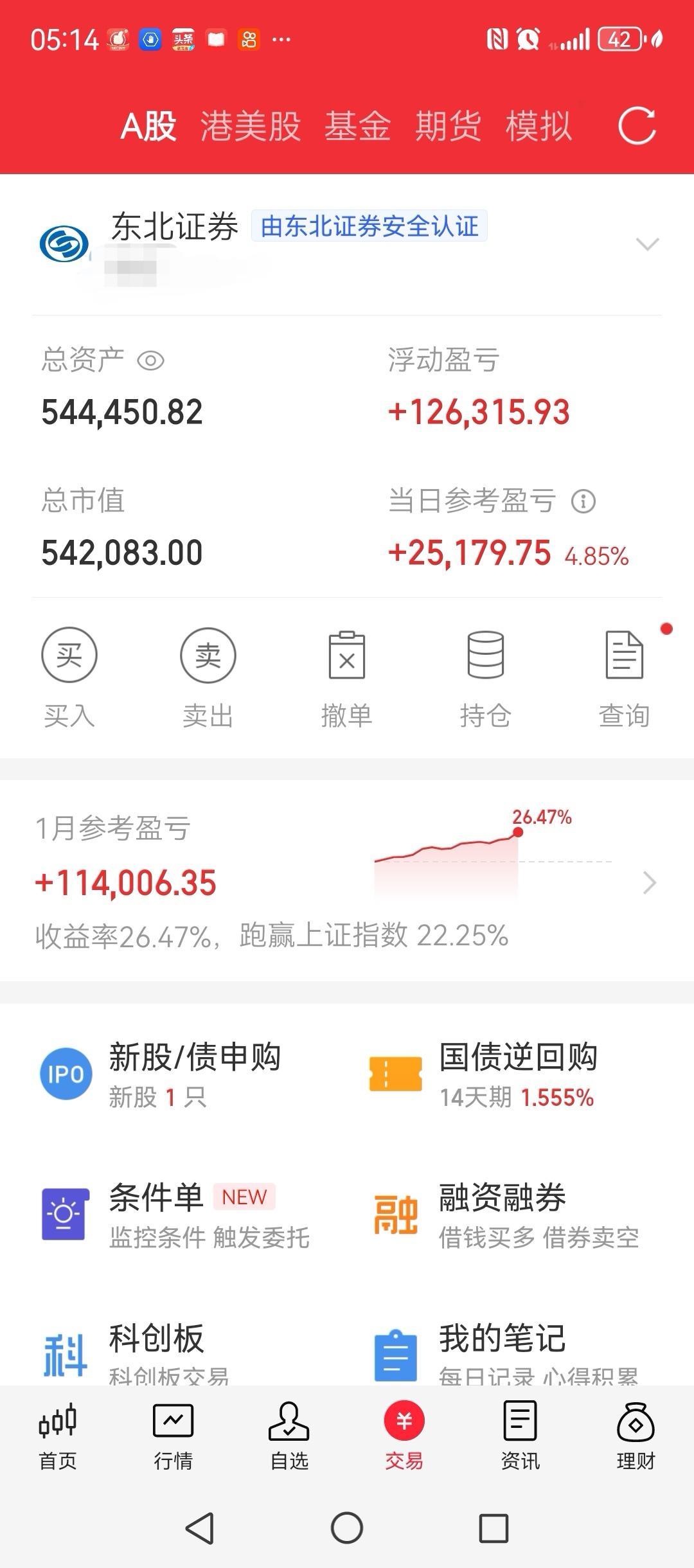 最近市场不温不火,但是账户的表现却非常不错。从收益曲线来看,可以用陡然向上来形容。 不管是累计收益率,还是元旦过后的单月收益率,都可以用出色来形容。 账户就两个股票,包括了两个行业板块。一个是稀有金属贵金属,一个是人形机器人。 我的理念是,好价格买入好股票,不赚钱不卖,甚至是不赚大钱不卖。 说的具体一点,就是择时买入处于上升趋势,且相对低位,交易相对活跃的主流行业的核心龙头个股,不赚钱不卖,甚至不赚大钱不卖。