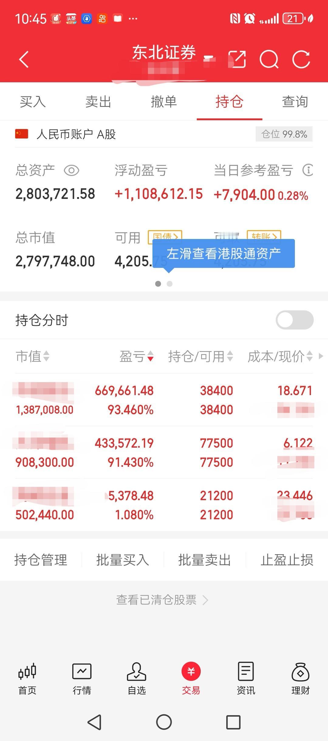 指数在横盘震荡,账户却已创出新高,一年左右的时间,收益率将近130%。 手中持股都是科技股,坚持有价值的趋势投资。 其中的两个都接近翻倍,都属于人形机器人板块,另外一个属于新材料。 我的理念是,好价格买入好股票,不赚钱不卖,甚至不赚大钱不卖。 具体的说,就是择时买入处于上升趋势且相对低位,交易相对活跃的主流行业的核心龙头个股,不赚钱不卖,甚至不赚大钱不卖。