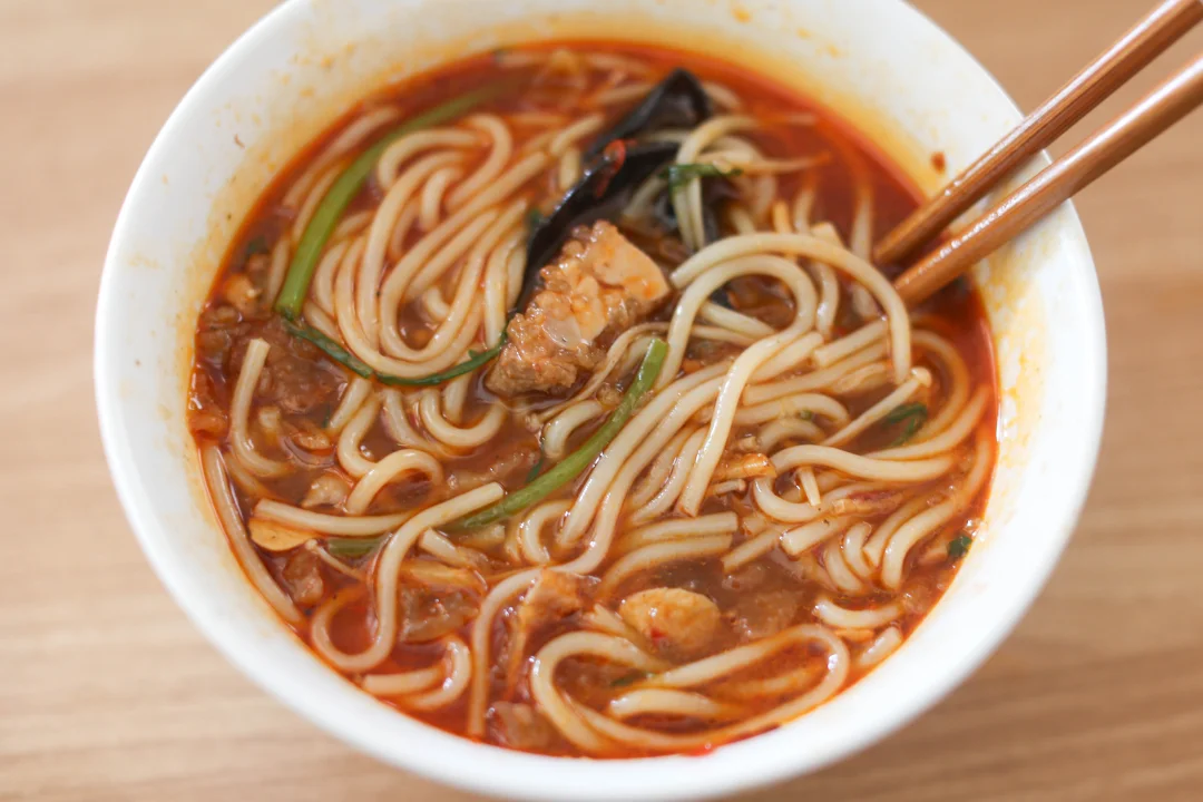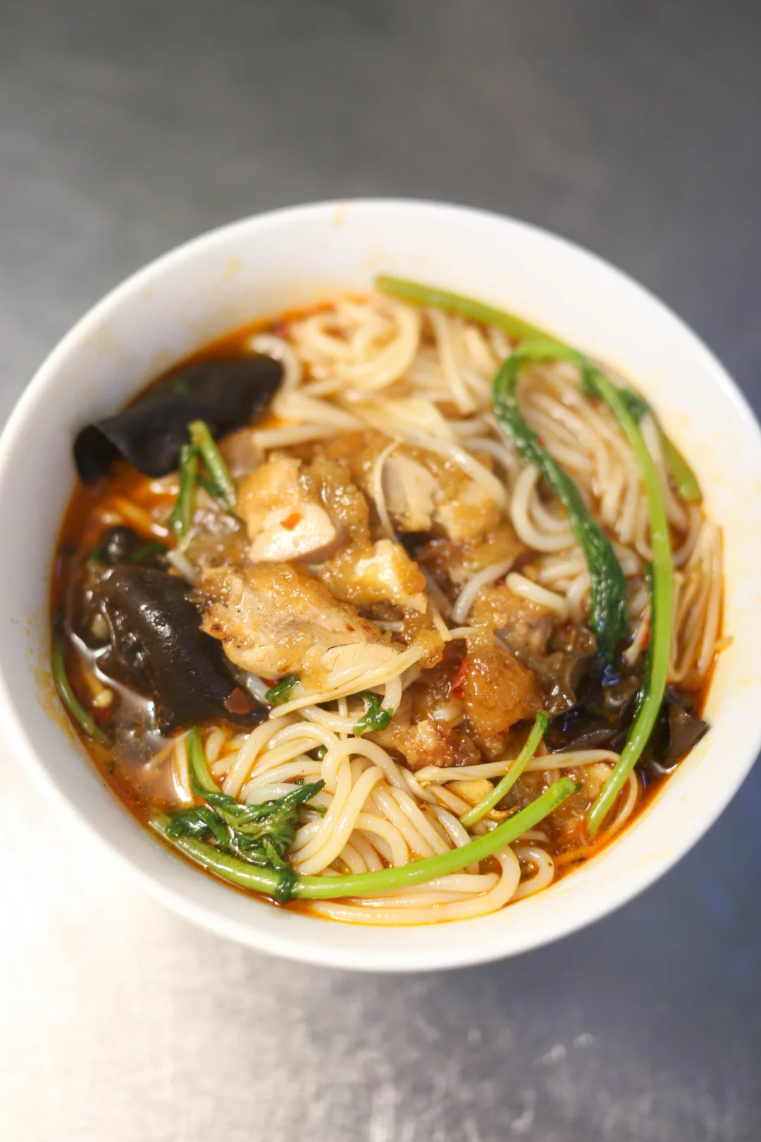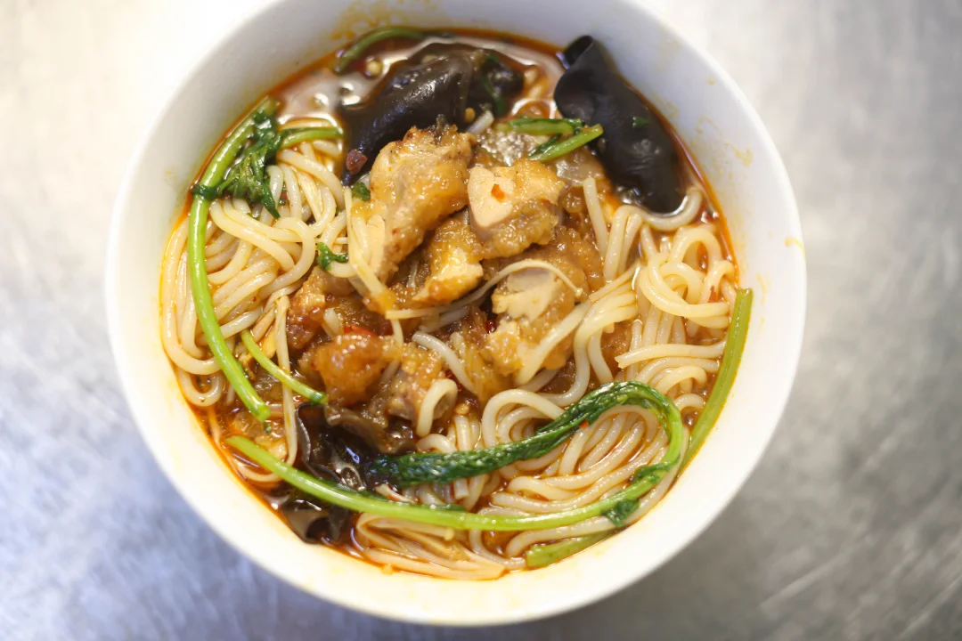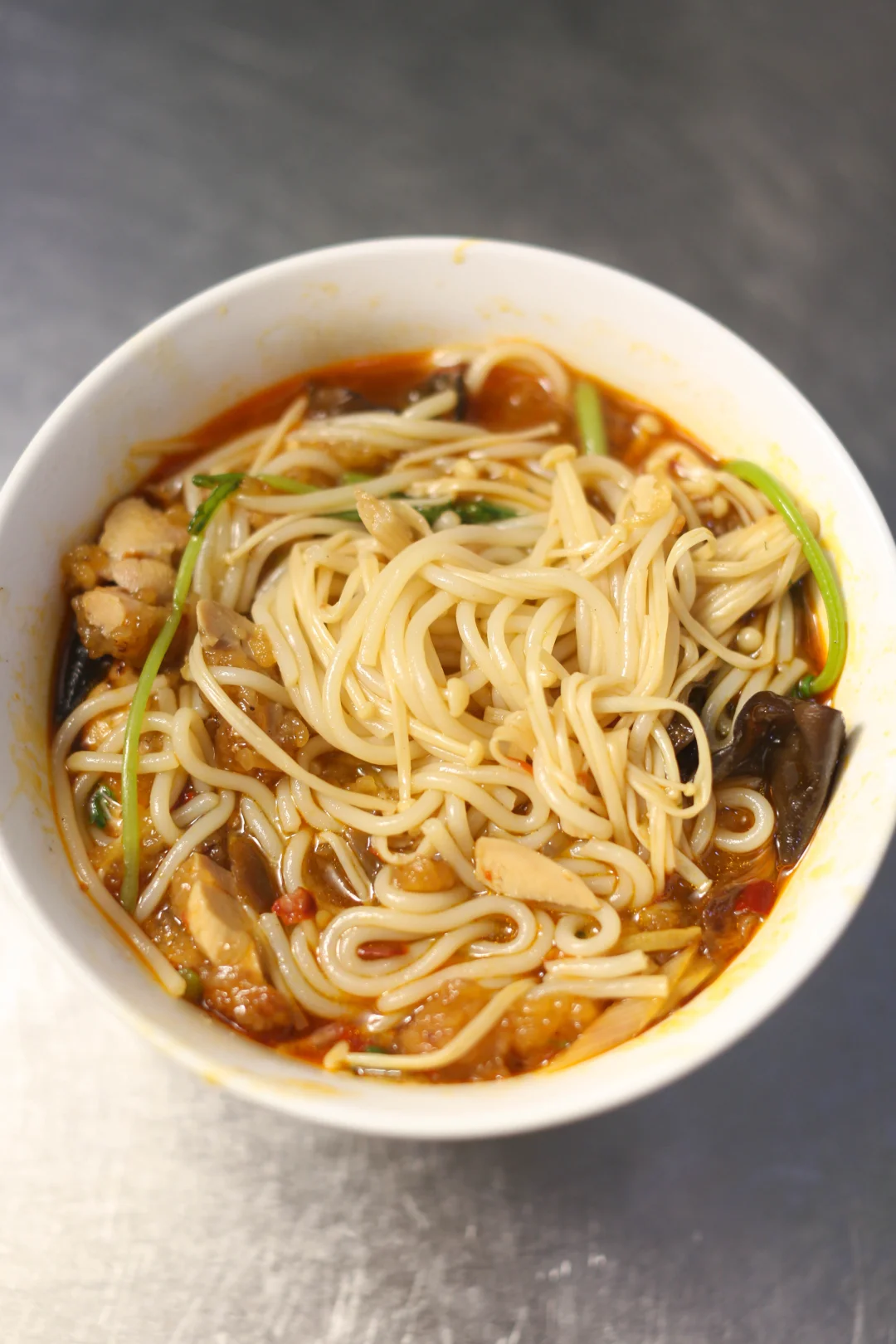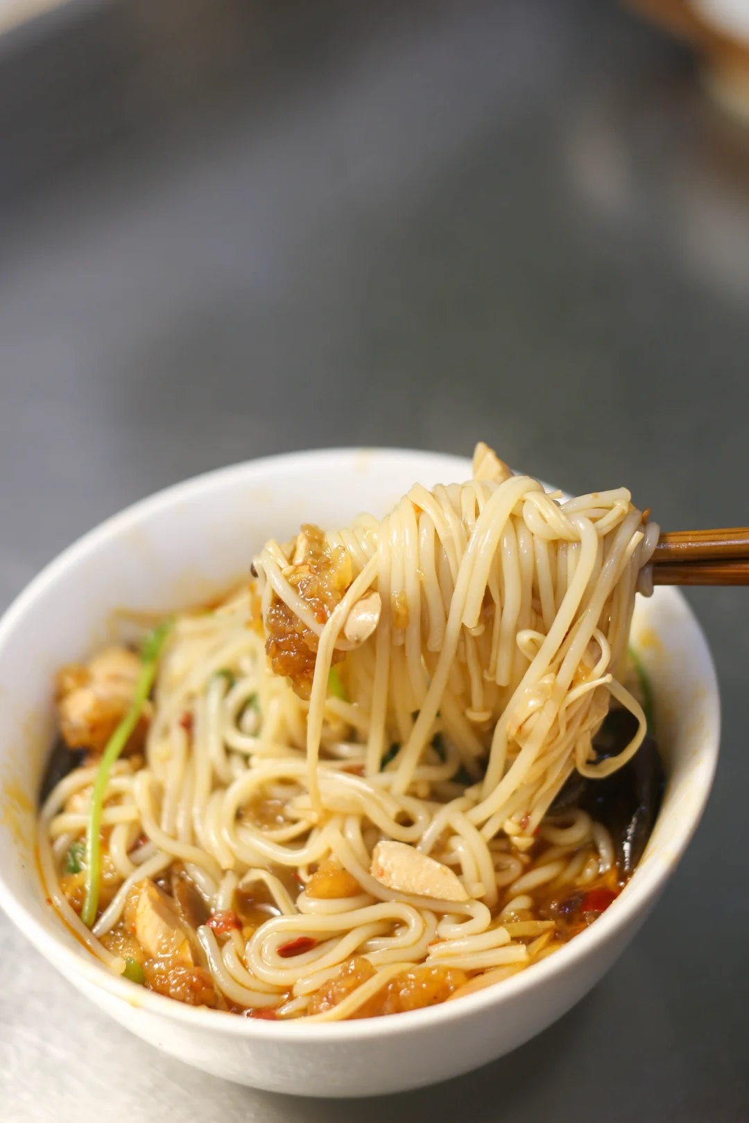 昨天炸了鸡块,剩了一些没吃完,今天中午稍微二次加工,做成了辣子鸡丁米粉,红油的咸香,香辣有味,米粉爽滑弹牙,非常好吃。