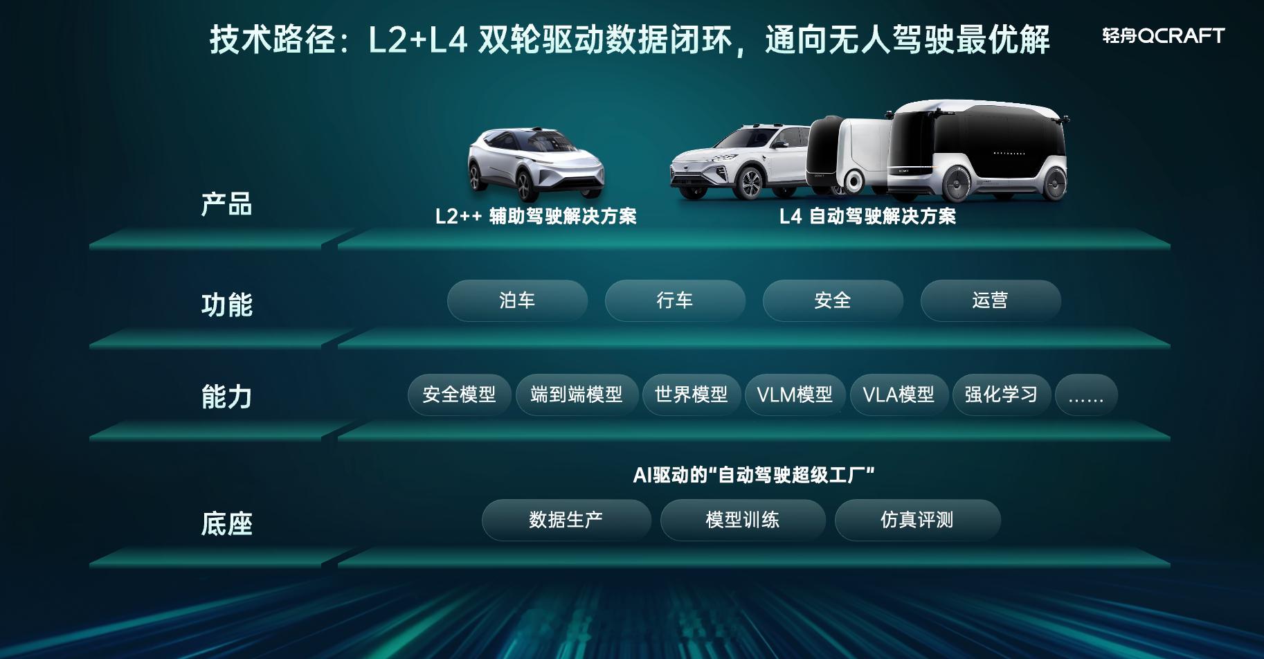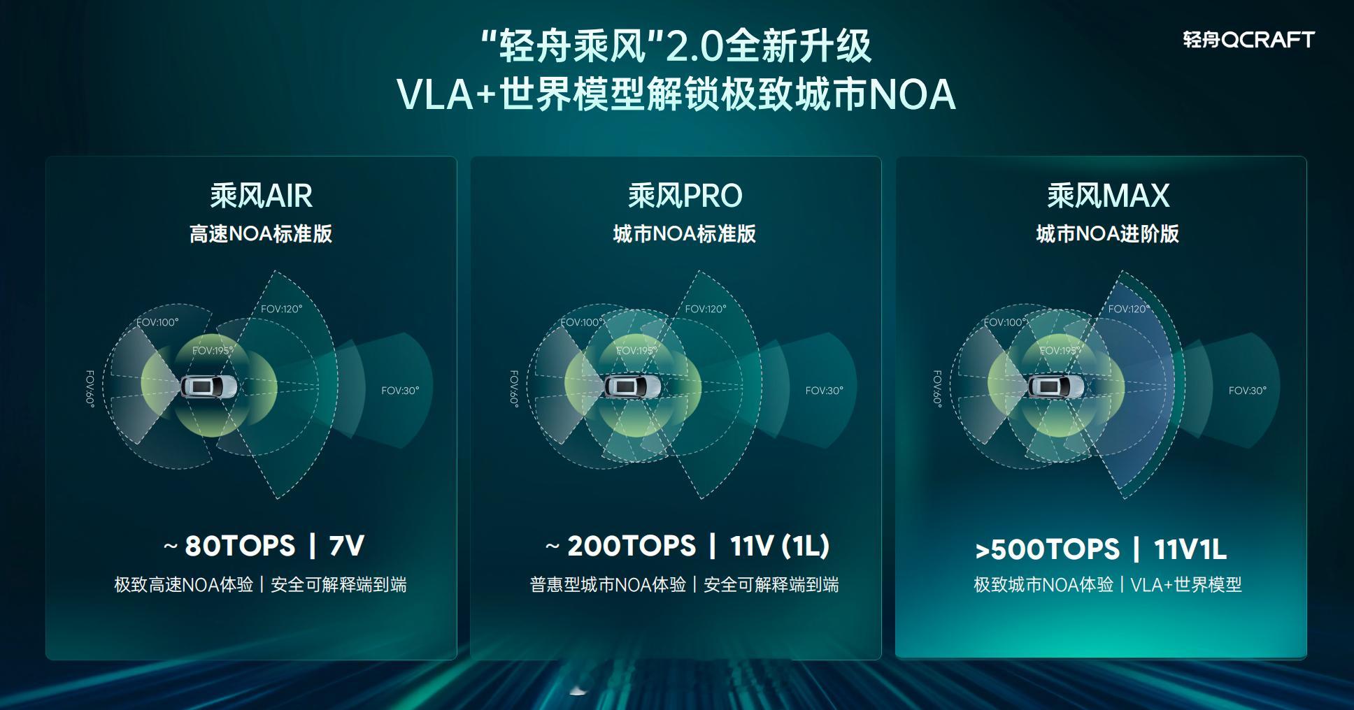 在今天的 QCraft DAY 2026 活动上,轻舟智航发布新一代「轻舟乘风 2.0」辅助驾驶解决方案,共分为三级:- 乘风AIR:有高速 NOA 能力,约 80 TOPS 算力,传感器为 7V;- 乘风PRO:有城市 NOA 能力,约 200 TOPS 算力,传感器为 11V 或 11V1L ;- 乘风MAX:城市NOA进阶版,大于 500 TOPS 算力,采用 11V1L 传感器配置,深度融合 VLA 与世界模型技术。同时轻舟正式亮相「VLA+ 世界模型」统一架构。该架构不仅能复用轻舟已有的端到端能力,还能通过语言能力精准理解环境文本、复杂场景与语音指令,再借助世界预测模型,精准推演交通参与者行为、道路结构变化与动态场景演进,从而规划出最优行驶轨迹。42mark新能源汽车轻舟智航