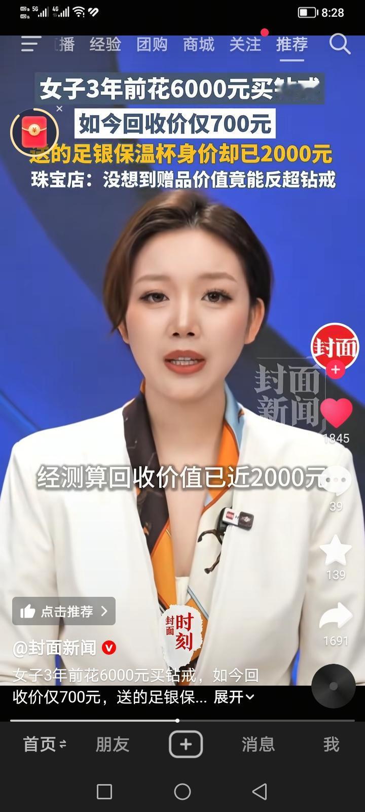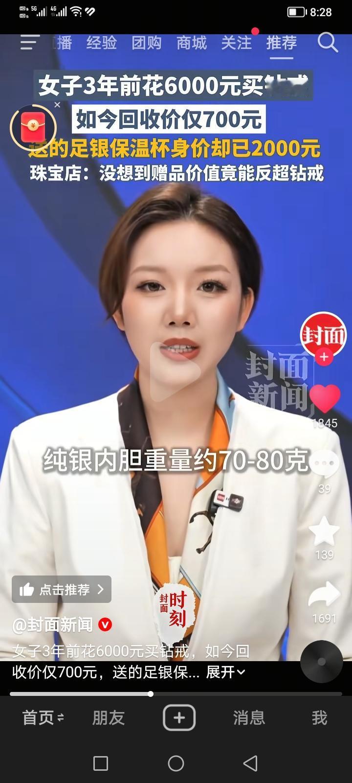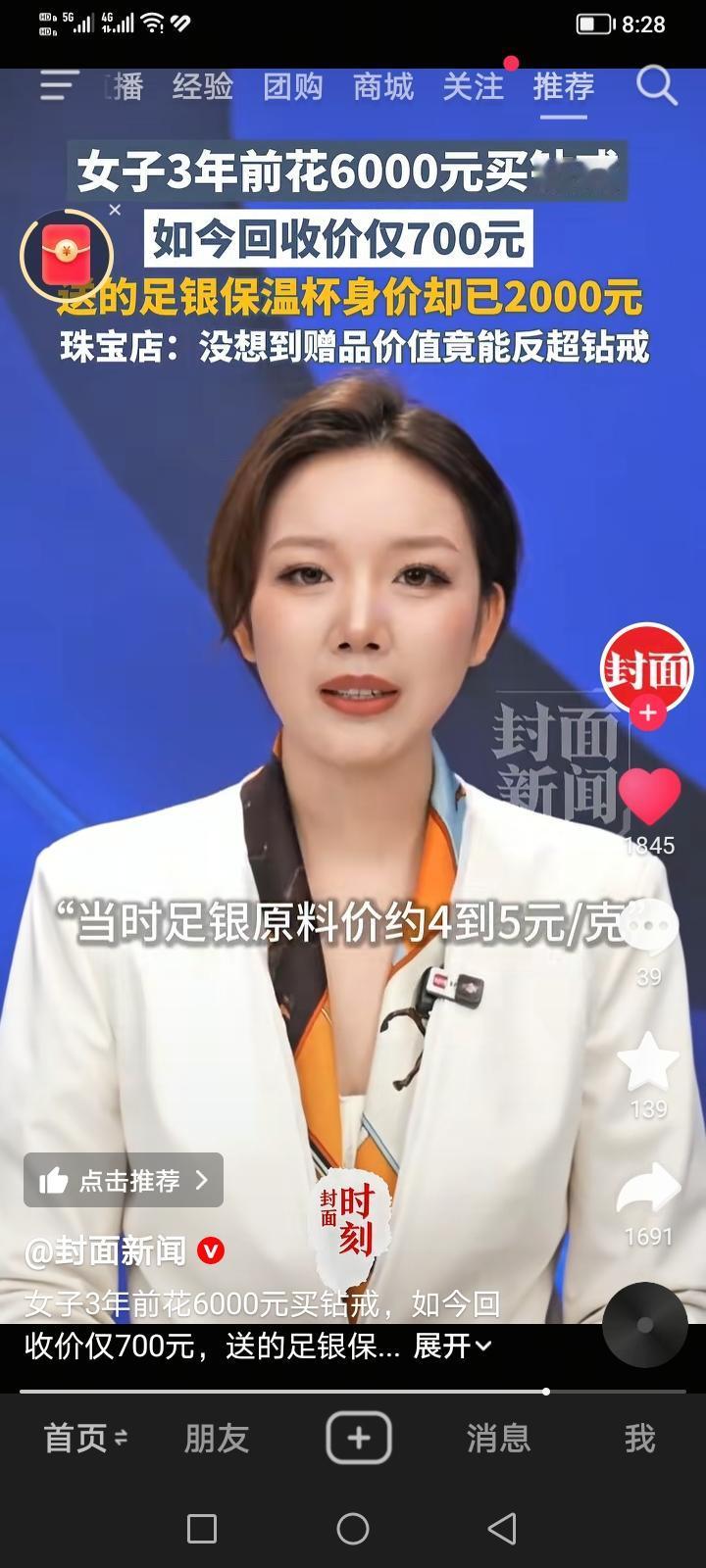 白银这两三年涨价非常猛,如果以前,家里有买东西送白银的,不妨看看家里有没有?看到一个新闻,一女士三年前花6000元买了一个钻戒,当时还送了一个白银保温杯。如今钻戒贬值到回收只值700块,但那个白银保温杯当时才值三四百块钱,如今已经价值2000多元了,这是赠品反超原品的罕见案例。大家不妨在家里翻一翻,看有没有类似的白银赠品。(图片信息来源:封面新闻)白银价格疯涨 黄金白银价格 白银市场行情 白银价格 白银价格行情 白银一克 白银多小钱一克