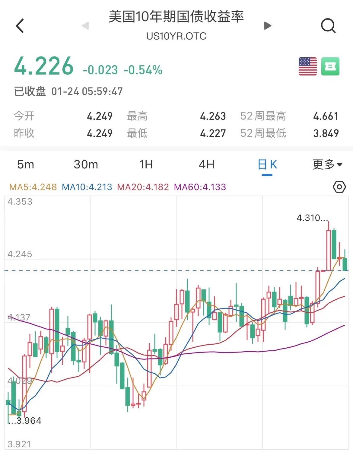 资本抛售美债,美元走低,美股周线两连跌,资金疯狂涌出,那么结果就是冲进贵金属黄金和白银,特正在不断打破市场的认知和遵守的常规,为市场增加了更多不确定性,资金借道黄金、白银避险已成为共识了,这大概就是这一波现货黄金、暴涨的最基本驱动力了当美债和政治挂钩,但美元走进下跌周期,当美股也已经扛不住接连搞事情的时候,从委内瑞拉再到格陵兰岛,再到现在要对伊朗动手,唯一的目的就是掠夺资源、矿产、能源等一切一切的资源,充实美国经济,提振美国GDP,应对高昂的美债债务和利息,当所有都发现规则已被打破,全球共识已破裂,那么能握手里最原始和最重要也就是贵金属了,黄金是锚,白银是生产属性和金属性子,所以上涨似乎也在情理之中了。今日看盘