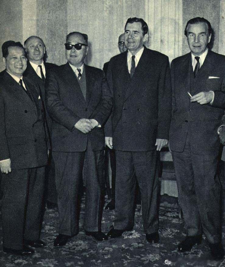1961年5月出席和平解决老挝问题的扩大的日内瓦会议的中国、苏联、越南民主共和国、波兰政府代表团团长在一起合影,前排左起雍文谦、陈毅、葛罗米柯、腊帕茨基历史影像