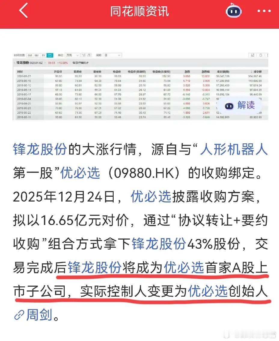 锋龙股份18连板封神!停牌核查、风险提示全挡不住资金热情,何来不公?不过是实质性重组硬逻辑PK虚幻题材,优必选入主的核心价值摆在那,资金从不是盲目追捧。跌涨从非监管使然,而是硬实力的终极答案,分歧放量终会来,但当下的连板,都是价值的正解。
