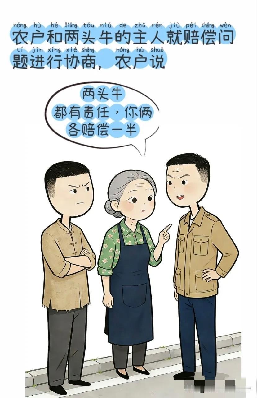 逗你笑:公牛和母牛发情把稻谷糟蹋了。农户:两头牛都有责任,各赔偿一半。公牛主人:我只赔三分之一,因为母牛四只脚踩,公牛才两只脚踩