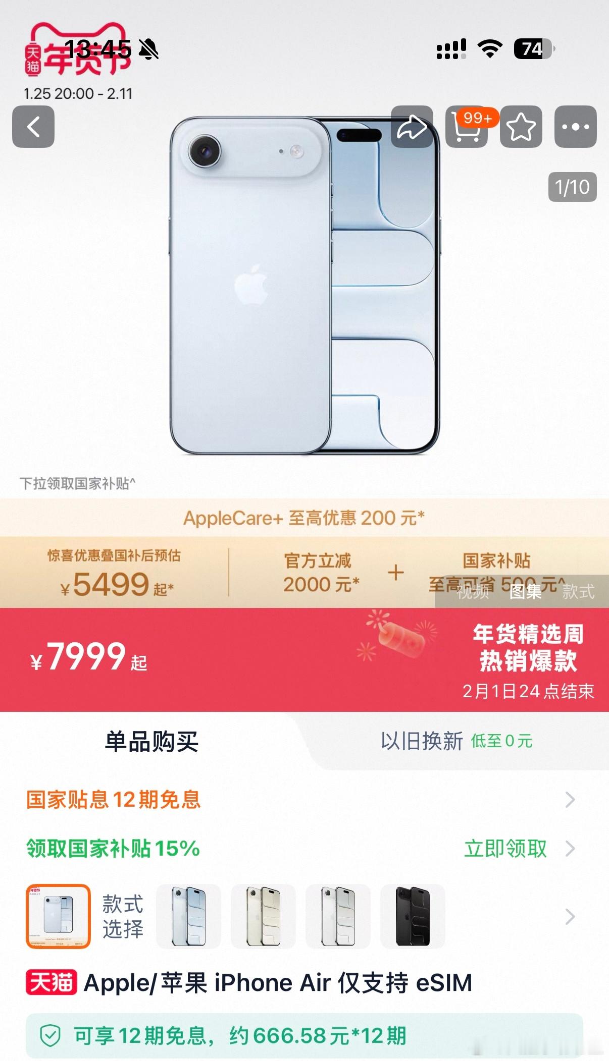 iPhoneAir直降2500块 好家伙,iPhone Air 直接降价2000,还能叠国补减500!活动从1月25日开始到2月11日,工作室好多小伙伴都心动了,可是我是原价买的啊QAQ