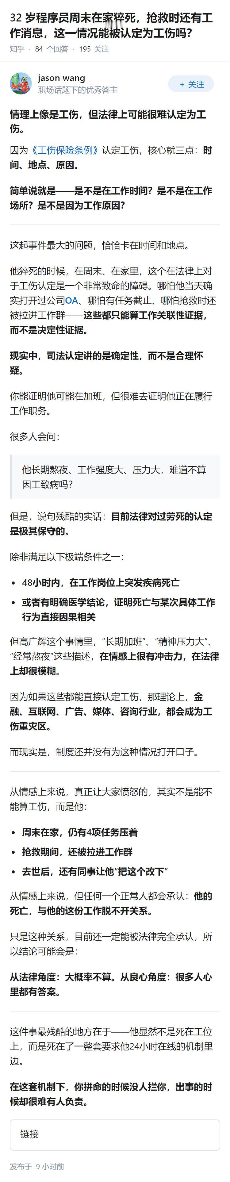 32 岁程序员周末在家猝死,抢救时还有工作消息,这一情况能被认定为工伤吗?