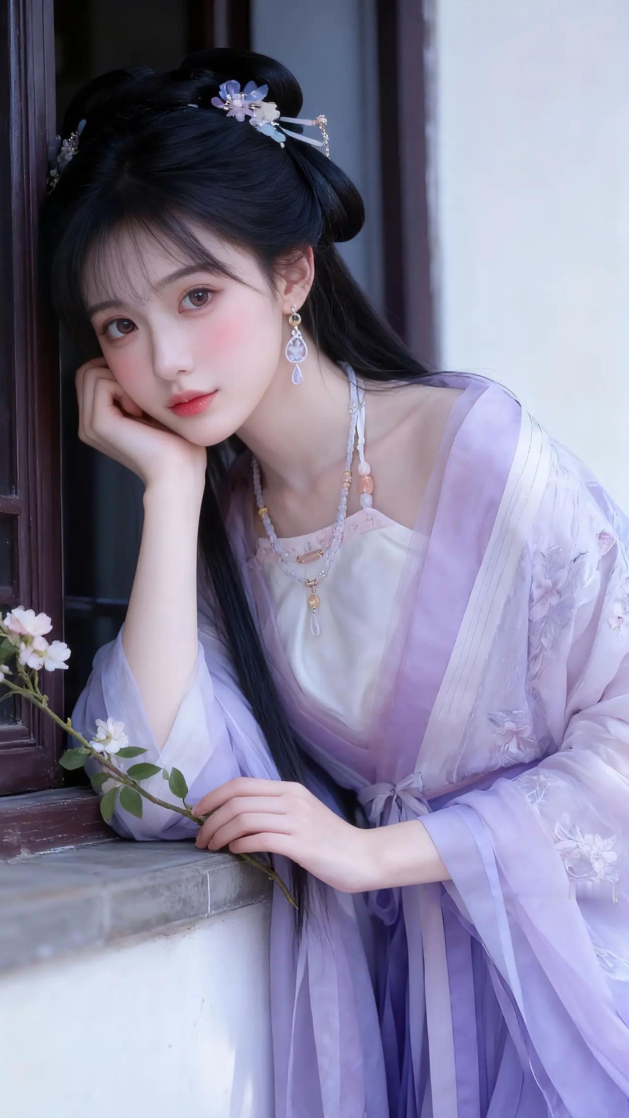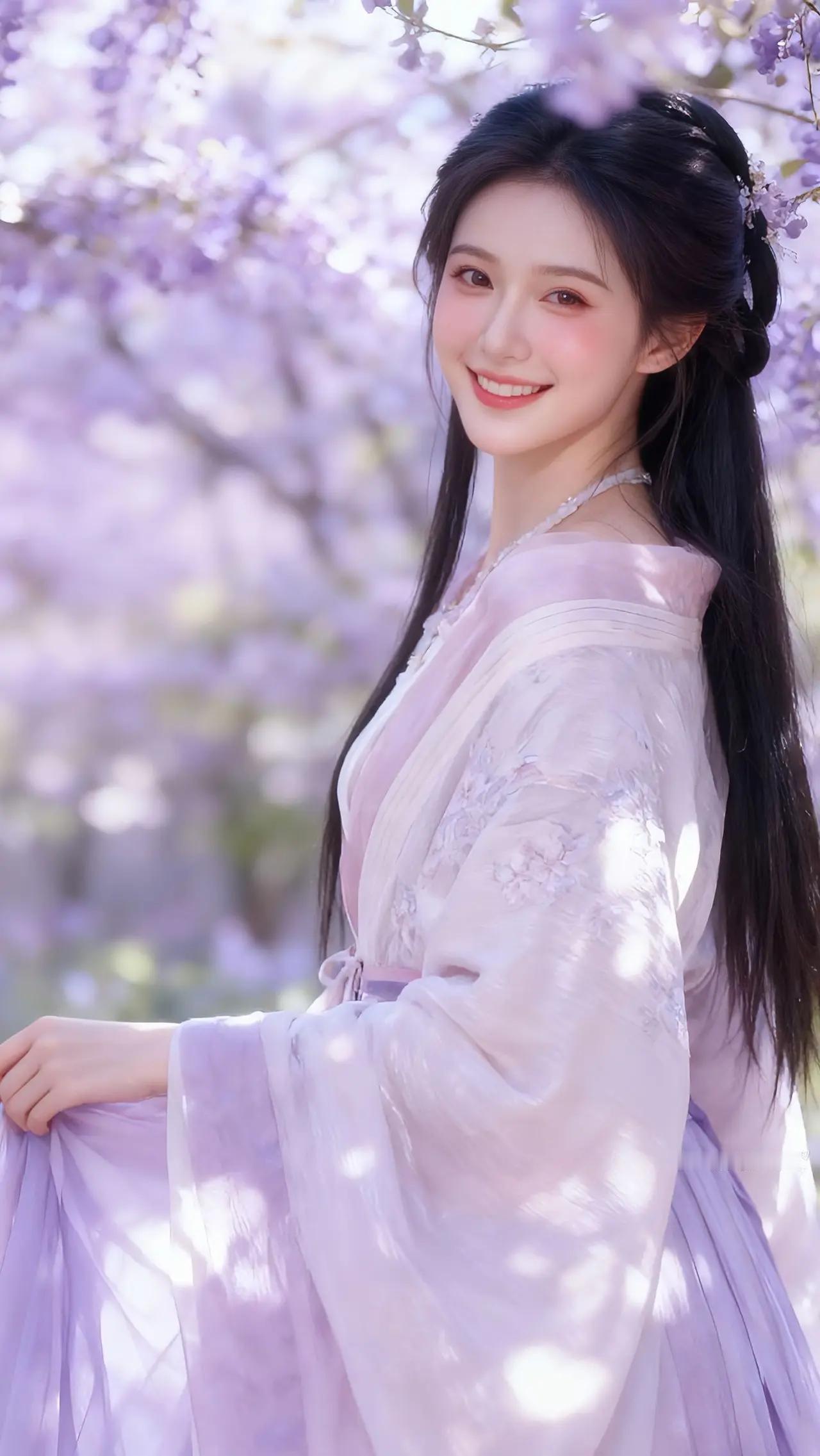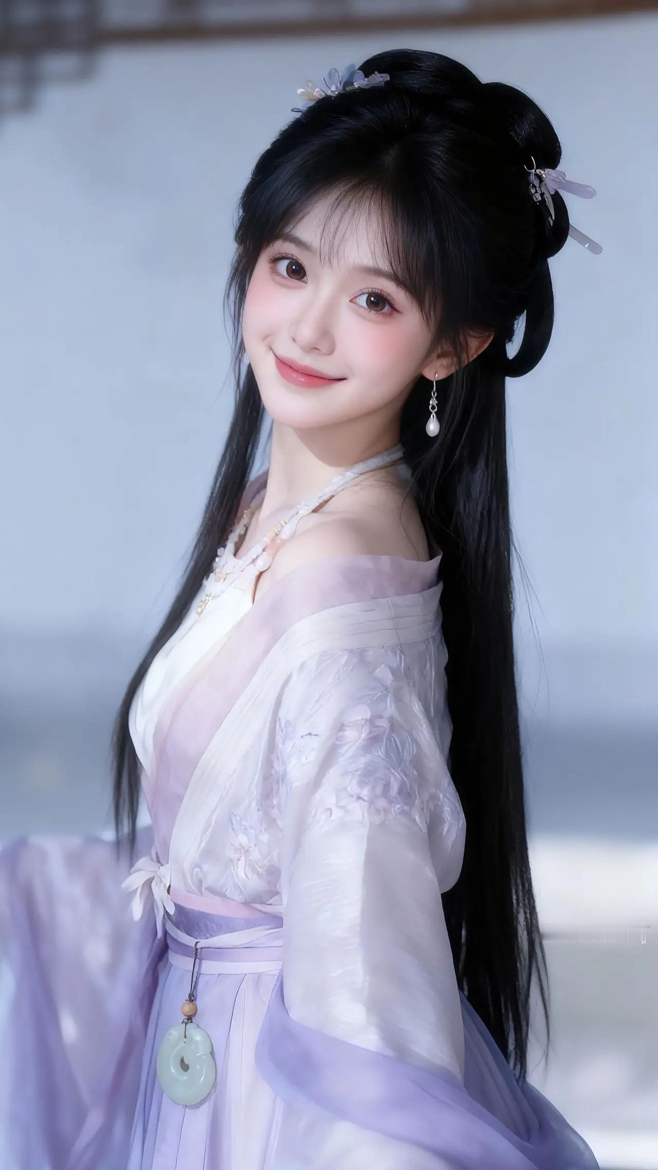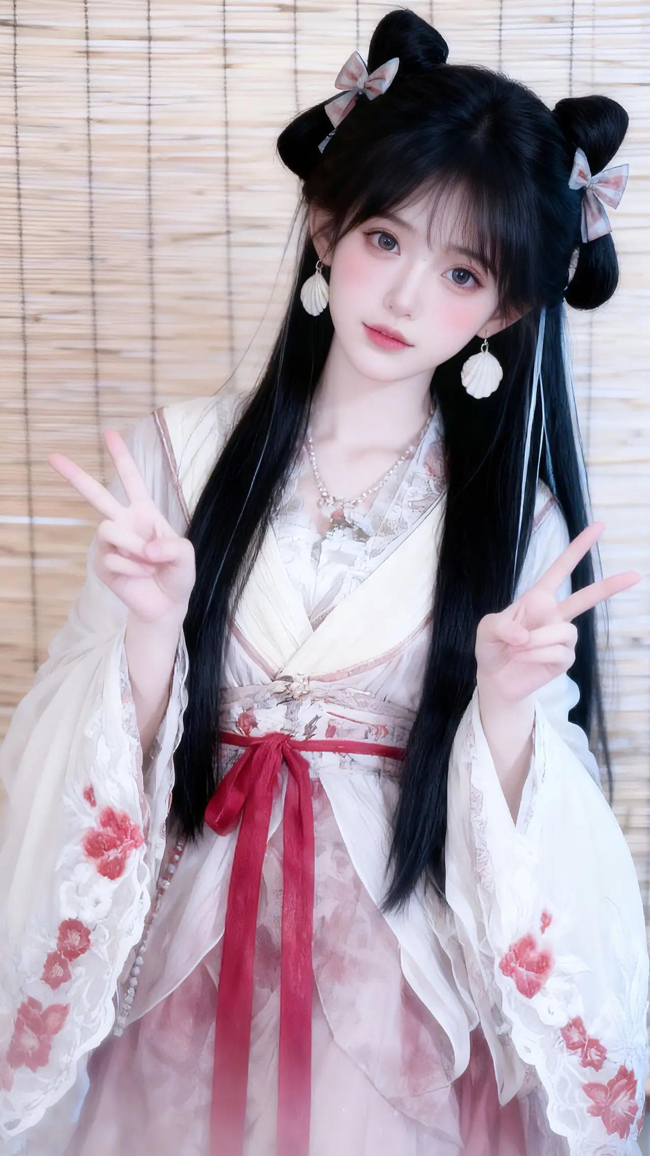 她的发髻精巧绝伦,犹如夜空中最璀璨的星辰,点缀着精致的发饰,熠熠生辉。那对清澈明亮的双眸,如同深邃的湖水,藏着无尽的故事与温柔,轻轻一瞥,便足以令世间万物黯然失色。 她轻盈地举起双手,做出优雅的“V”字手势,那一刻,仿佛连时光都为之停滞。那姿态,如同翩翩起舞的蝴蝶,轻盈而又充满力量,每一个细微的动作都散发着无与伦比的魅力。 她的笑容,更是世间最美的风景。那抹温柔的笑意,如同春风拂过心田,温暖而又治愈,让人不禁沉醉其中,无法自拔。她的存在,仿佛点亮了整个世界,让一切平凡都变得不凡。 如此绝代风华,真是令人叹为观止!她不仅美在外表,更美在那股由内而外散发出的气质与风韵。在这片天地间,她就是最耀眼的星辰,最绚烂的花朵,最动人的诗篇。遇见她,仿佛遇见了世间所有的美好,让人不禁感叹:此景只应天上有,人间难得几回闻!