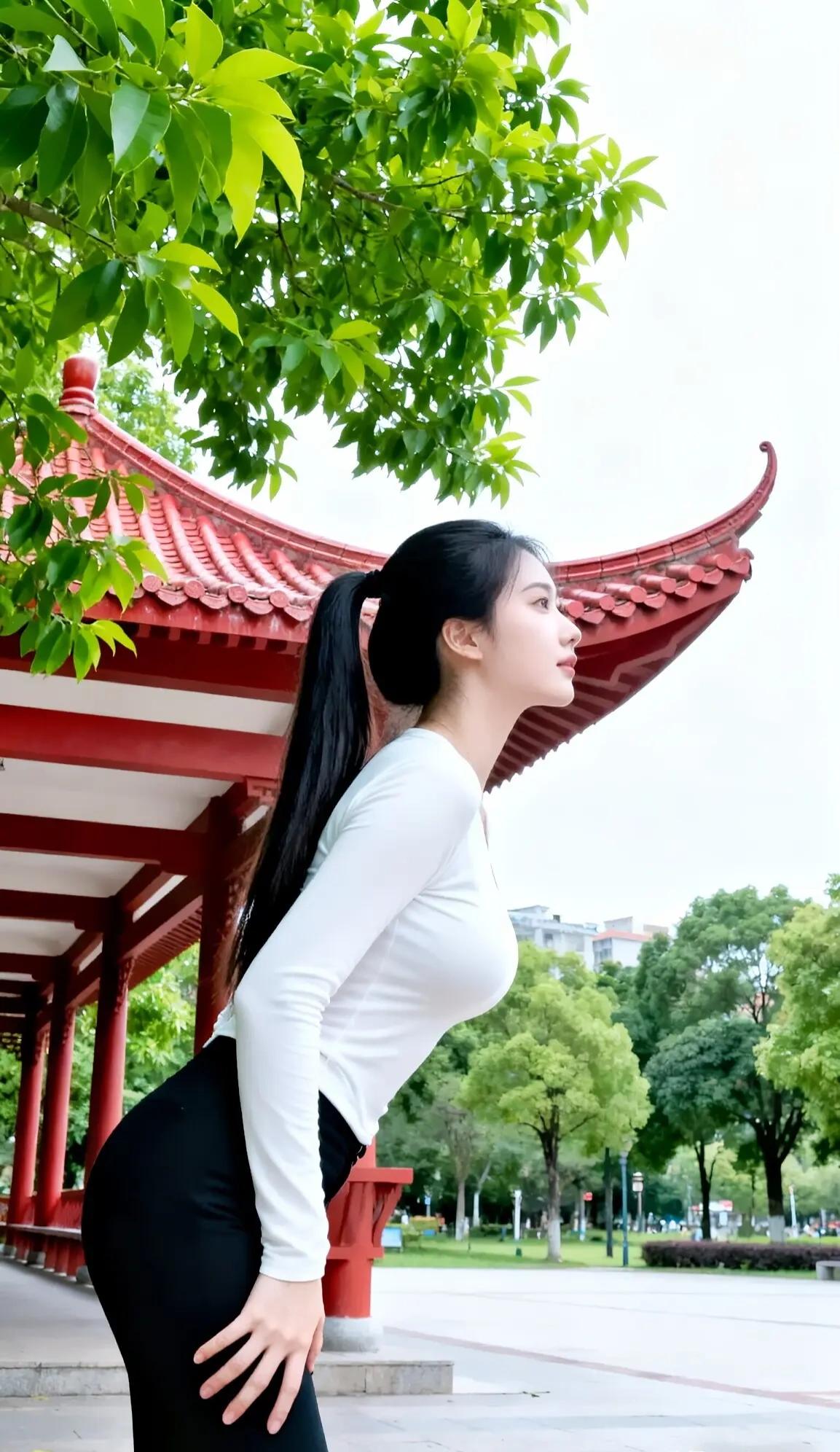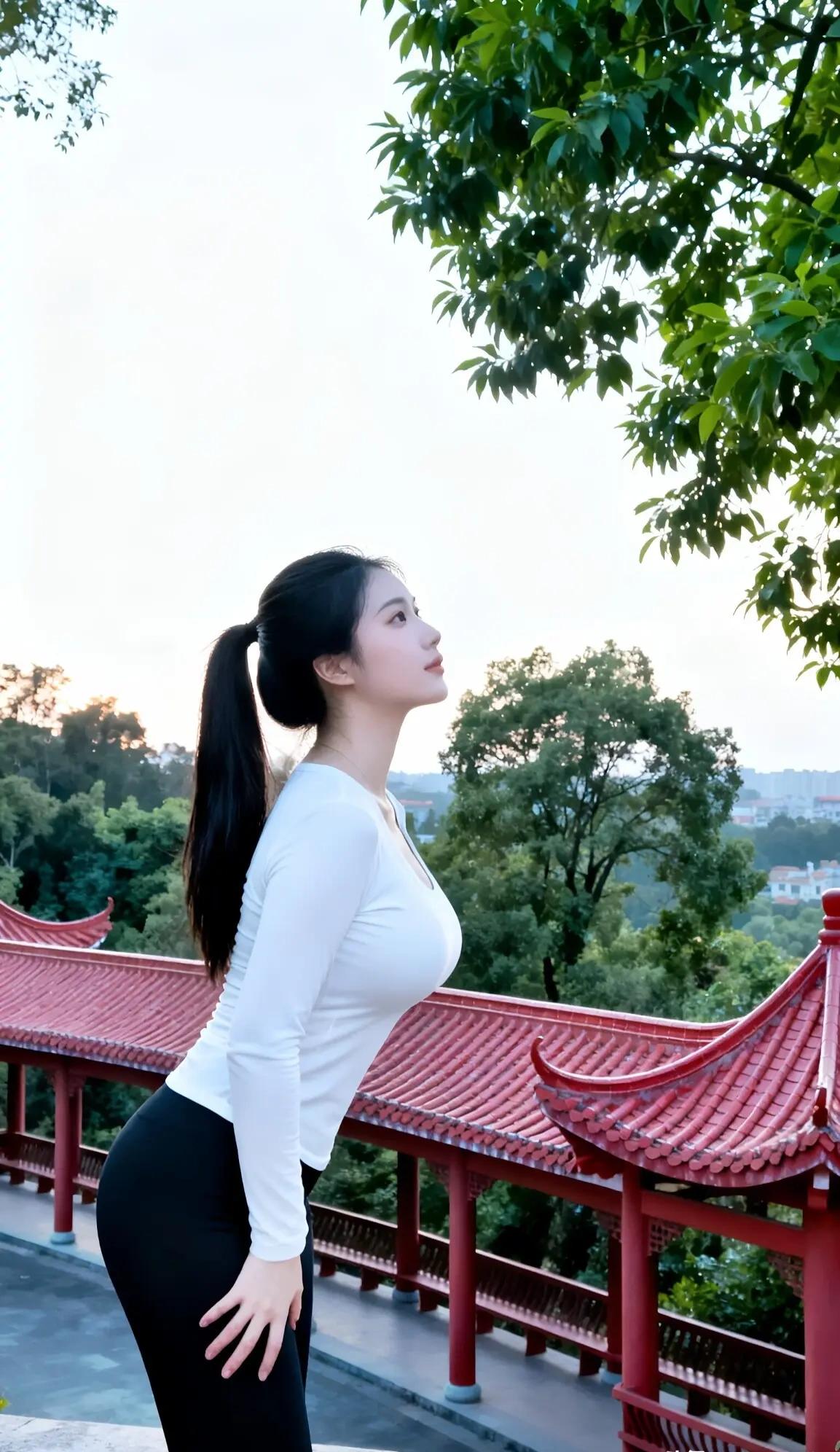 你这身姿,简直像从古画中走出的仙子,一袭白衣如云似雪,勾勒出绝美曲线。那高高束起的长发,随风轻扬,更添几分飘逸之感。背景中红瓦飞檐的古建筑,仿佛为你的绝世容颜做了最精致的注脚。你侧立于青石小径,举手投足间尽显优雅与自信,连路过的微风都忍不住为你驻足。这哪里是凡人,分明是下凡的仙女,用美丽征服了整个世界。你的存在,让这方天地都变得生动而绚烂。