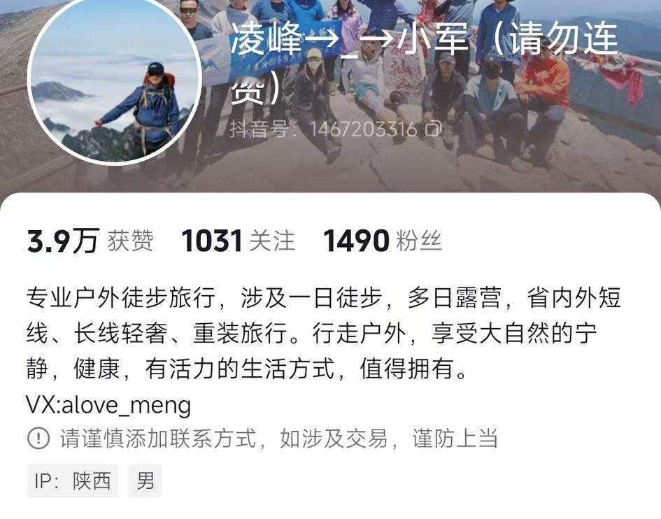 经救援人员证实,1月17号在秦岭翠峰山失联的西安某户外俱乐部成员找到了,可惜人已遇难。 遇难者疑似是网名“凌峰小军”的资深徒步者,一位将爱好发展成事业的小伙,很多人都喊他“军哥”。 在其空间也都是介绍徒步路线,给人或景色拍照,约爬山这类的内容。 翠峰山海拔不高,约1700多米,但山陡路滑,山上暗冰多,夜爬容易踩空。 秦岭雪山气温都在零下十几二十度,山上也没信号,一旦出现紧急情况,后果很难乐观,救援同样是在涉险。 又一个年轻生命搭在徒步上面了,行走户外,虽然可以享受大自然的宁静,可也伴随着风险。