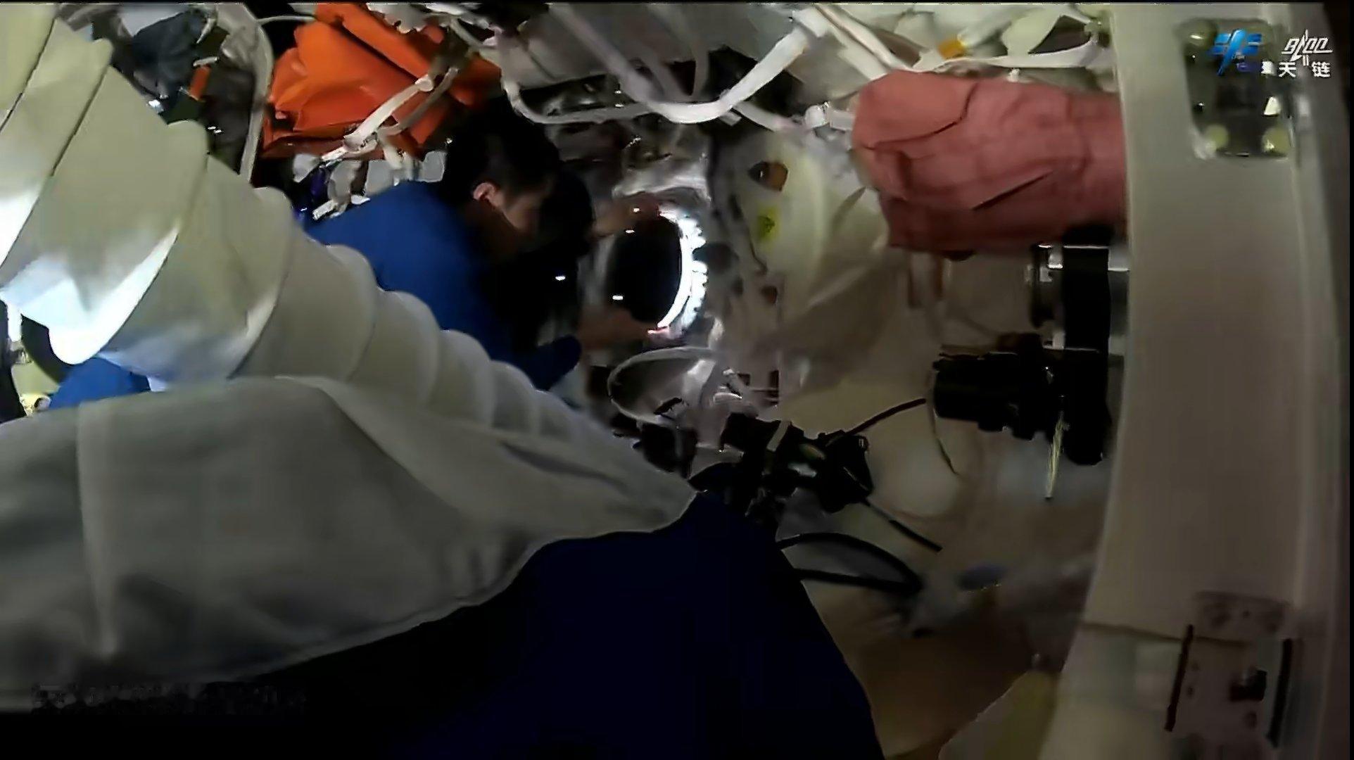 神舟二十号返回前,神二十一乘组将返回舱舷窗进行固定。