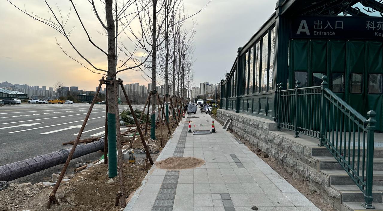 【青岛地铁啄木鸟】𝟓𝟎𝟓𝟕.地徽 🚇4号线 科苑经七路A A出入口地徽被施工方伴搬走,影响乘客乘车查看 应找回地徽安装回去,安装角度时地徽牌体应与路面垂直➕确保夜晚发光➕重新擦拭地徽双面牌体和杆子,目前地徽脏污严重 ————————————————————