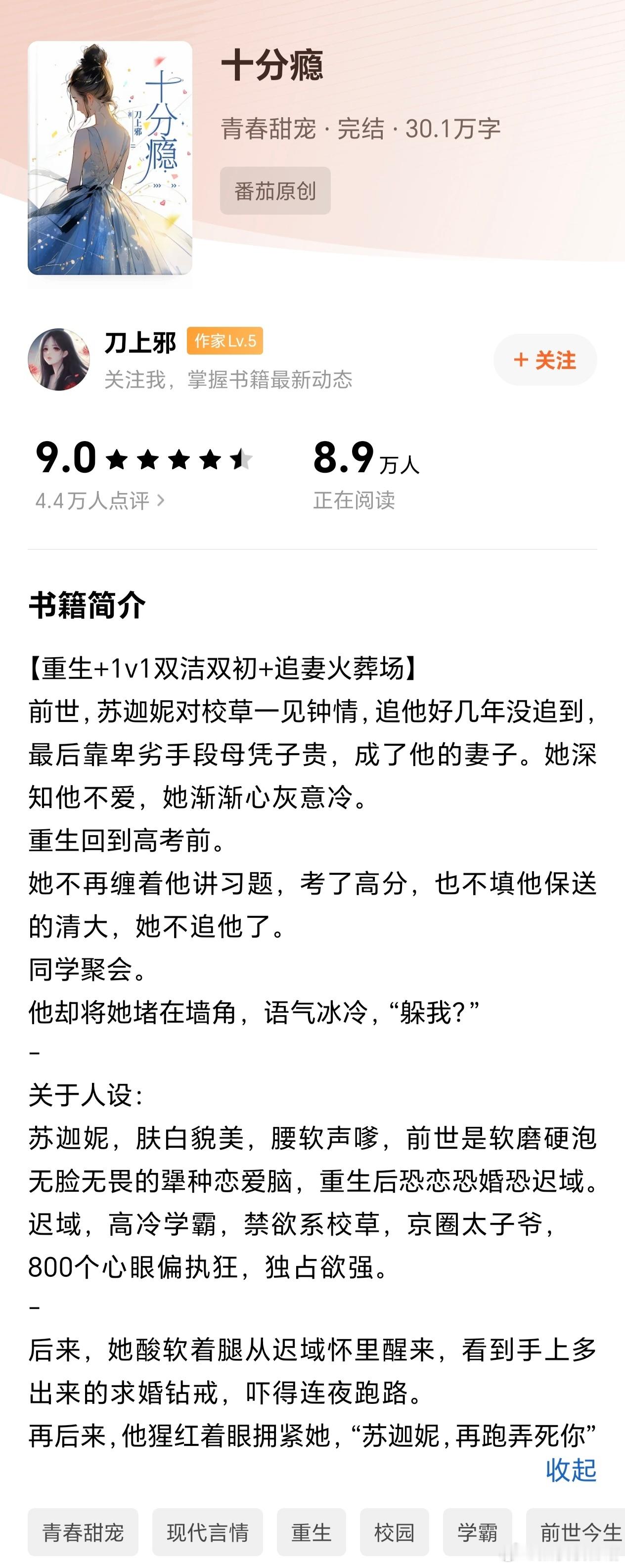 推文《十分瘾》作者:刀上邪校园到婚纱,追妻火葬场,可以当成重生文看,看到两人老