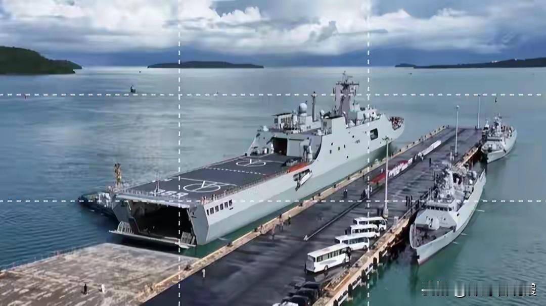美军濒海战斗舰辛辛那提号驶入柬埔寨云壤海军基地边,进行访问。