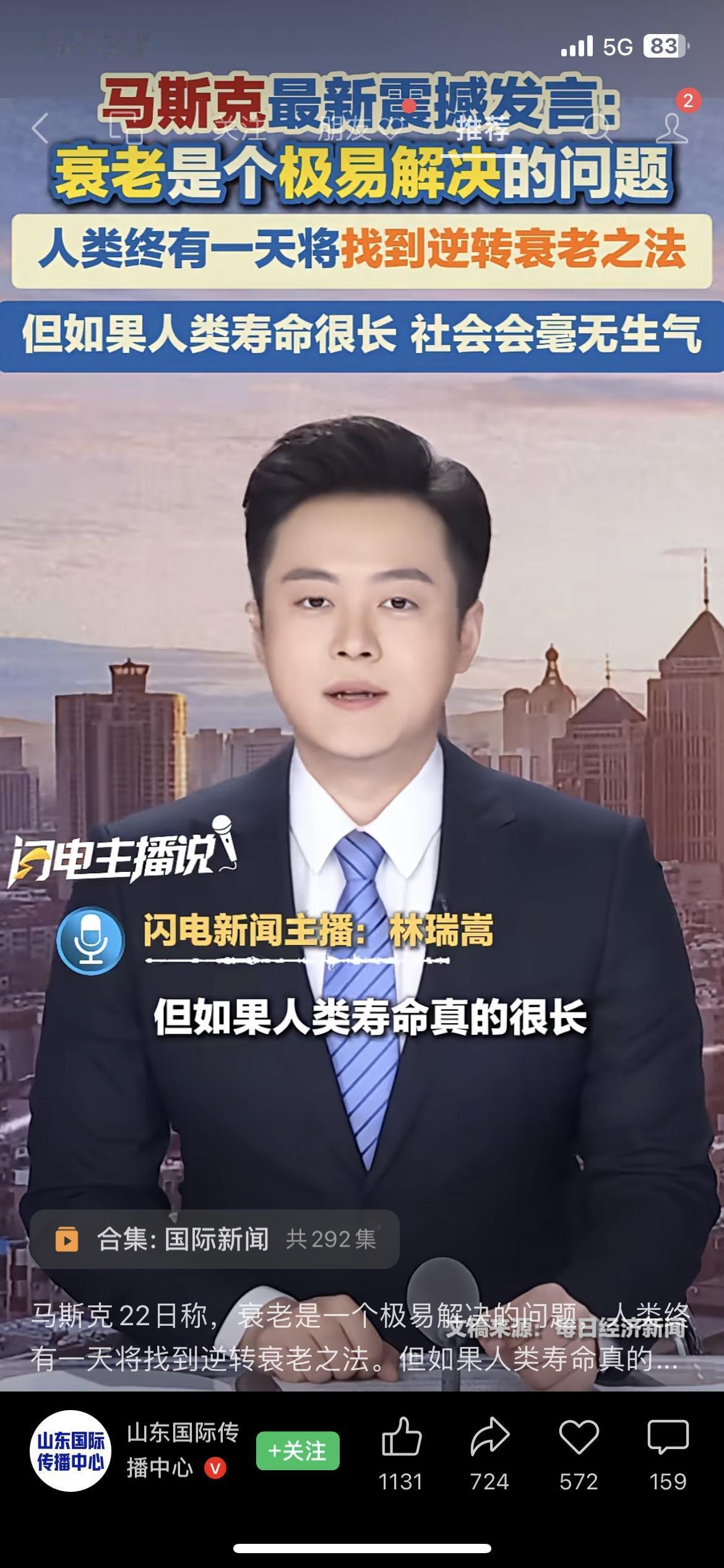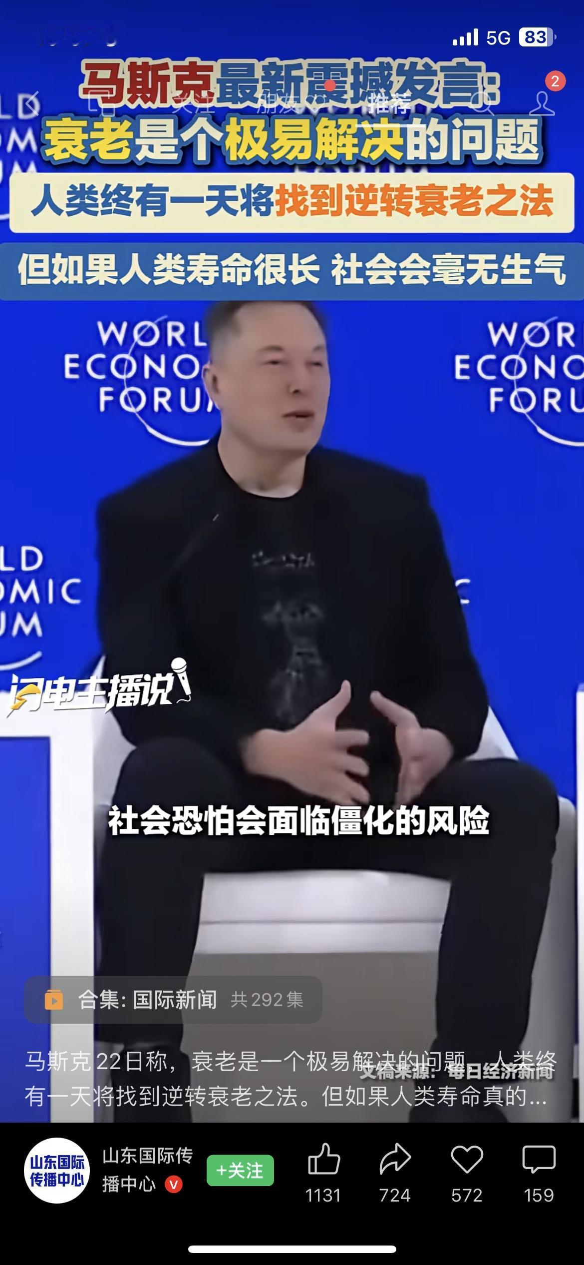 🤯马斯克狂言:衰老根本不难解决! 还直言人类能逆转衰老,但超长寿命会让社会没生气。 咱普通人听完真的扎心:活着的意义从不是熬时长,是有奔头的日子啊! 你愿意用冲劲换千年寿命吗? 马斯克谈衰老 科技热点