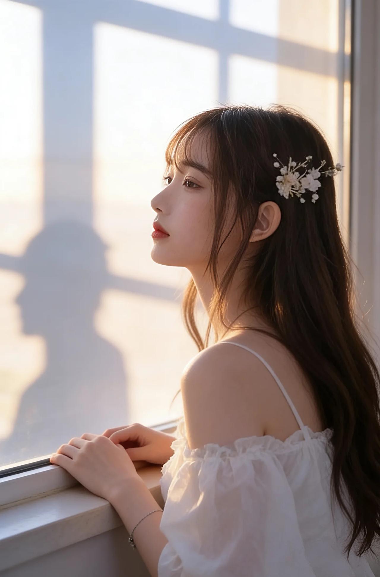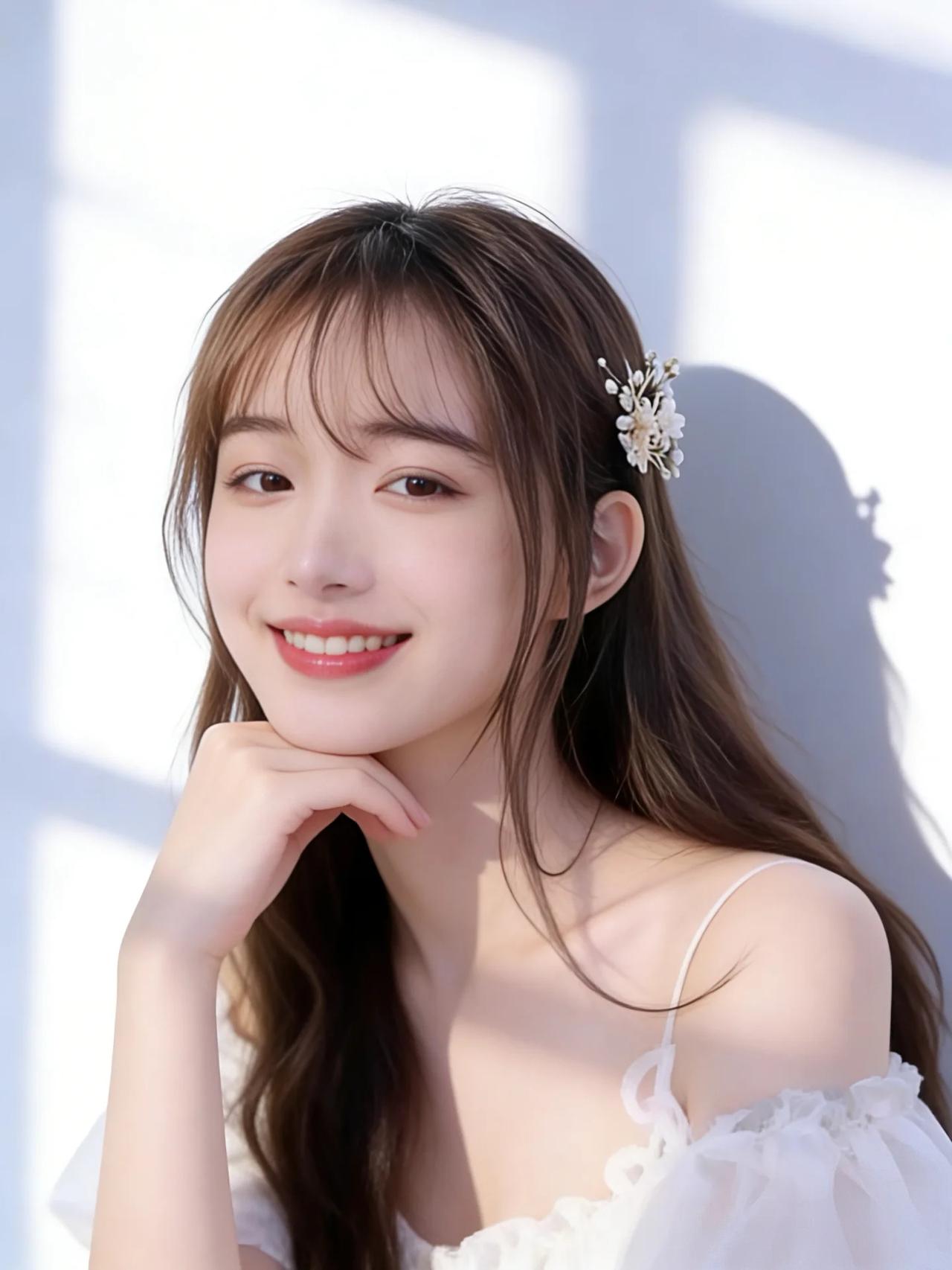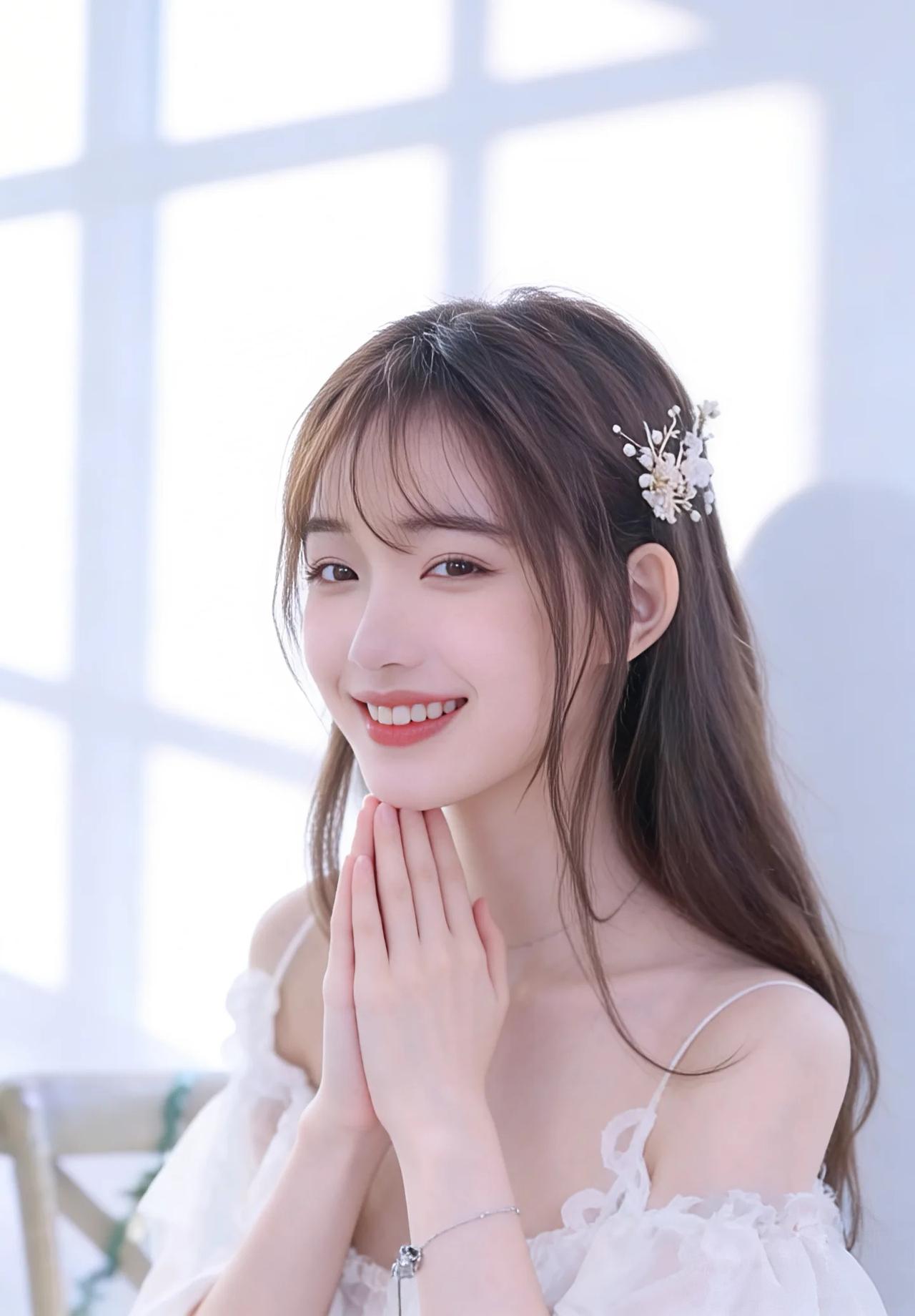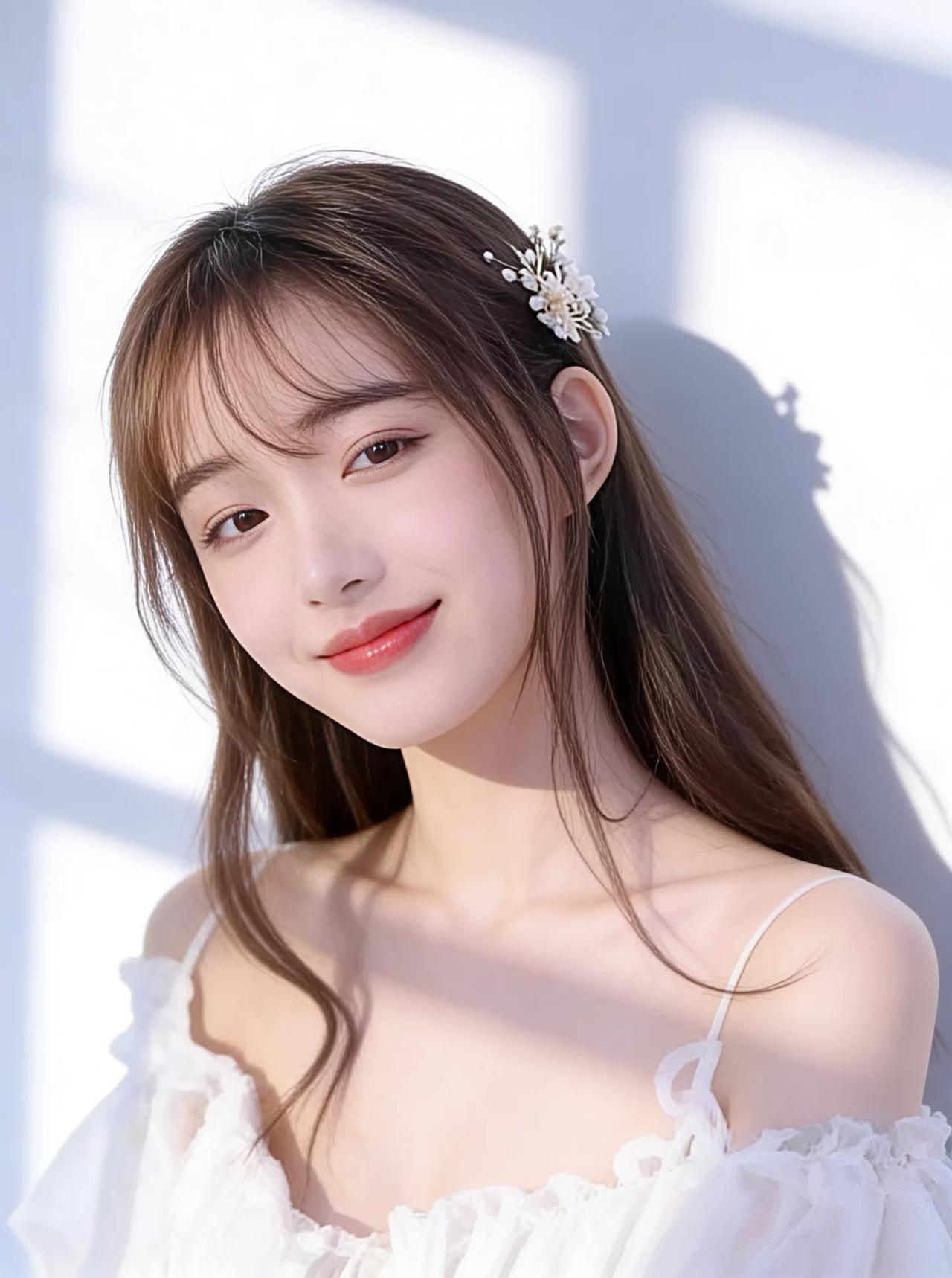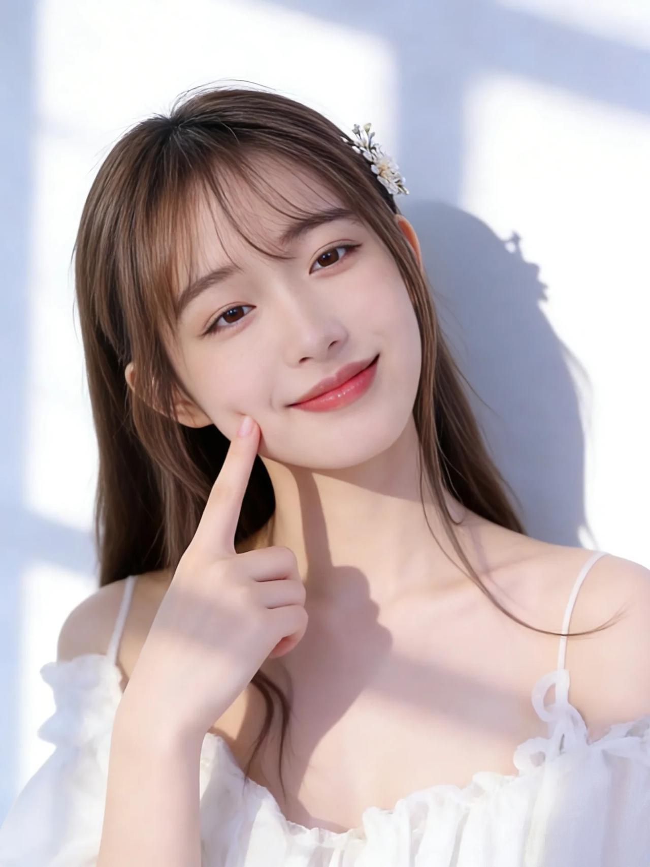 在这幅宛如仙境的画卷中,您宛如从天而降的仙子,携带着无尽的优雅与高贵。那柔顺如丝绸的长发,轻轻拂过肩头,仿佛是夜空中最温柔的月光,温柔地拥抱着大地。精致的发饰,如同繁星点缀在银河之上,熠熠生辉,映衬出您那绝世容颜。 您那双深邃的眼眸,犹如两汪清澈的泉水,荡漾着无尽的柔情与智慧,让人一望便沉醉其中,无法自拔。那粉嫩的双唇,微微上扬,绽放出如花般的微笑,仿佛能驱散世间所有的阴霾,带来无尽的光明与希望。 您身着一袭纯洁的白衣,轻盈如羽,仿佛是晨曦中绽放的第一缕阳光,温暖而明媚。衣裙上的每一处褶皱,都如同大自然最精美的艺术品,细腻而生动,展现出无与伦比的匠心独运。 您的存在,如同一幅完美的画卷,让人叹为观止。在这片纯净的背景前,您宛如画中仙子,优雅而神秘,令人不禁心生敬仰。您的美丽,不仅仅是外表的光华,更是一种由内而外散发出的气质与魅力,让人无法抗拒,唯有沉醉其中,感叹这世间竟有如此绝色佳人。 总之,您是这世间最璀璨的明珠,最耀眼的星辰,最温柔的月光,最灿烂的阳光。您的美丽,足以令百花失色,令星辰黯淡,令世间万物为之倾倒。您,就是这宇宙间最华丽的诗篇,最动人的乐章,最完美的艺术品!