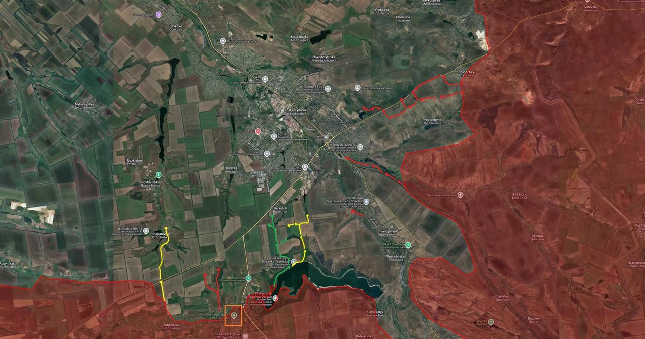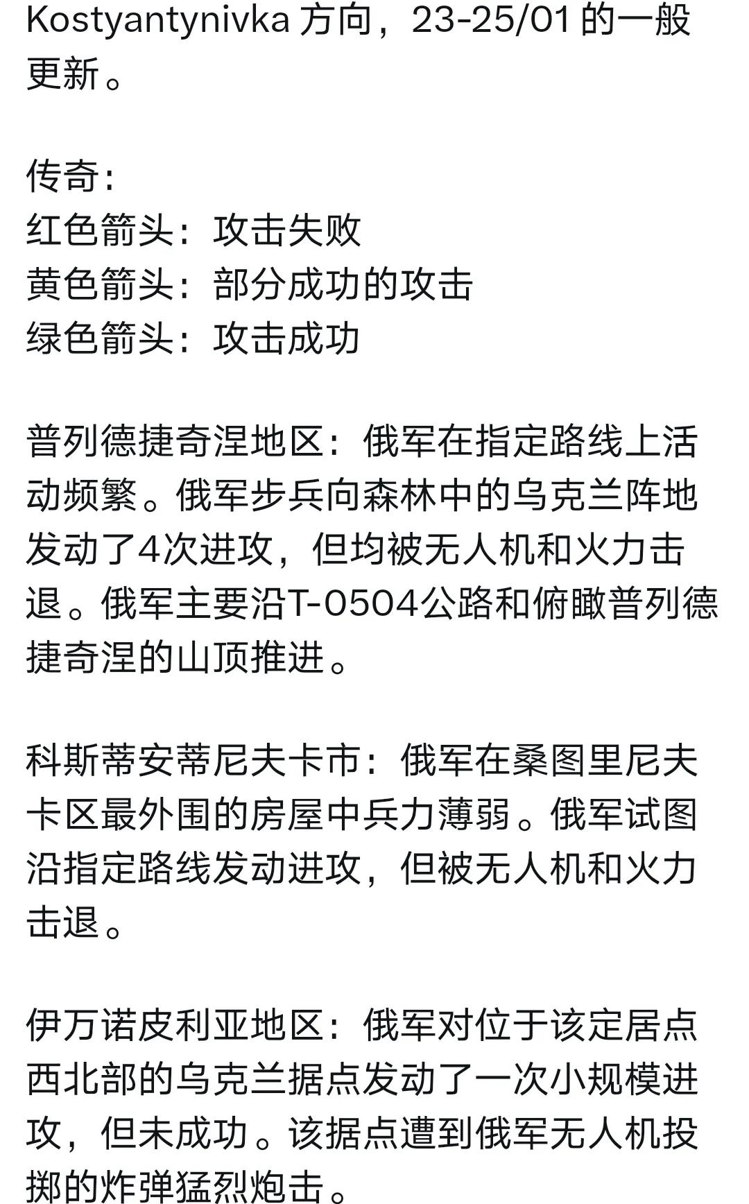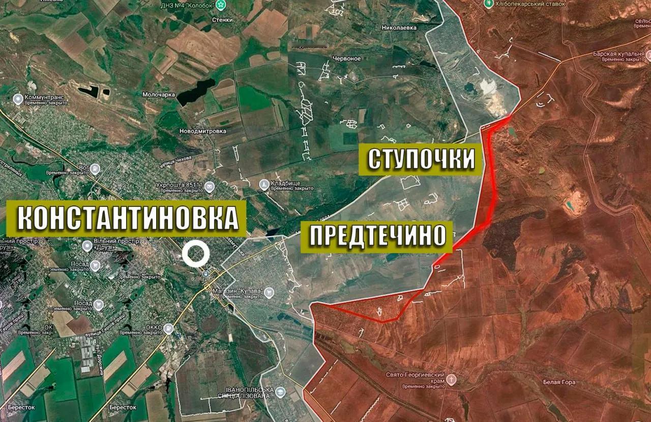 康斯坦丁诺夫卡,俄乌双方双战激烈。俄军在康城南侧取得进展。城东,俄军收获非常微小。 由于俄军无人机数量优势,乌军在康城的后勤受到严重威胁。 俄记者波多里亚卡认为,只要俄军不断渗透,当积累到足够数量,量变到质变,俄军终会象占领红军城那样,控制康斯坦丁诺夫卡。 详情见附图。