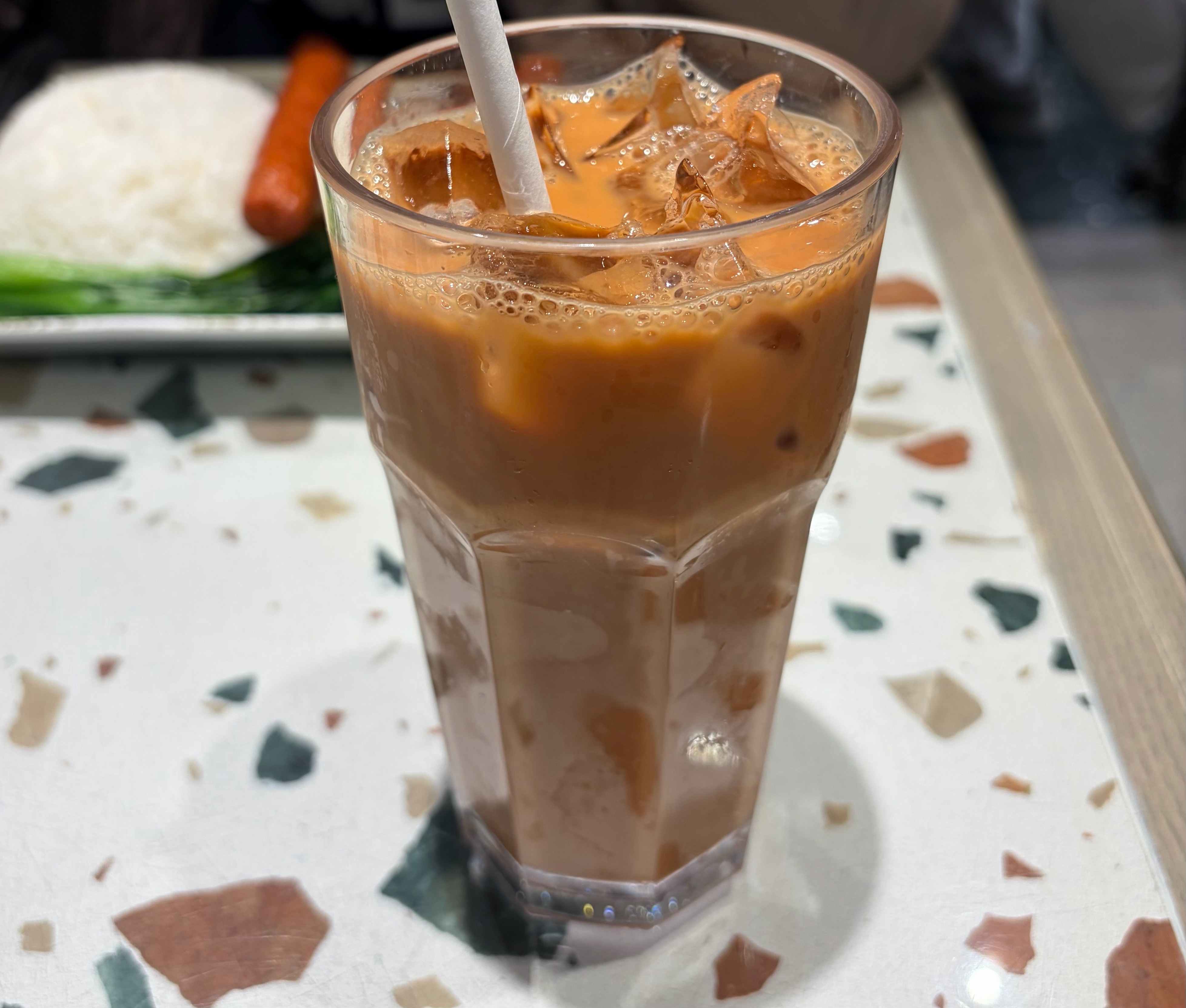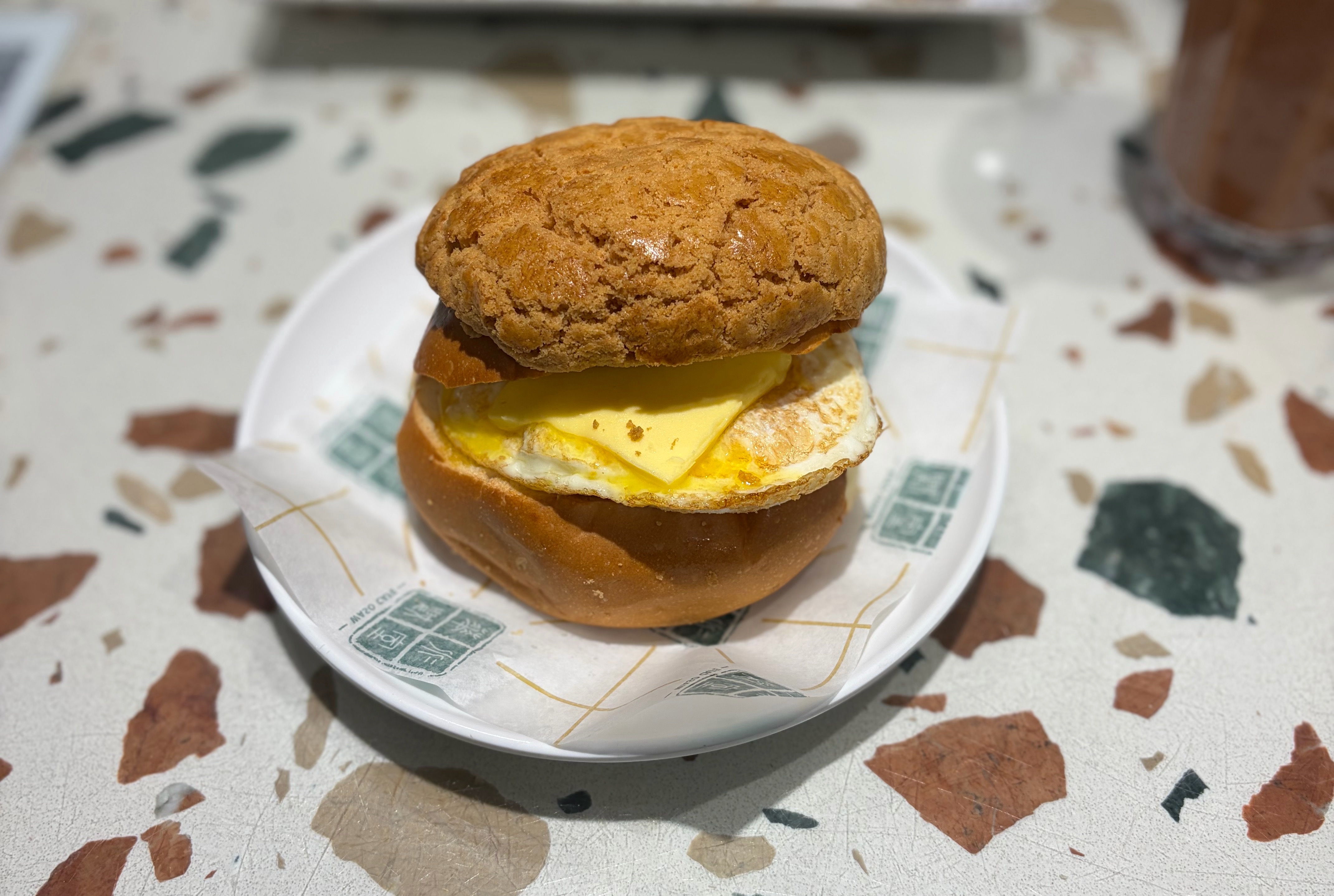 香港吃东西还是有点小贵的,这些要80左右,一杯奶茶21,冰的要加3块,这个菠萝油