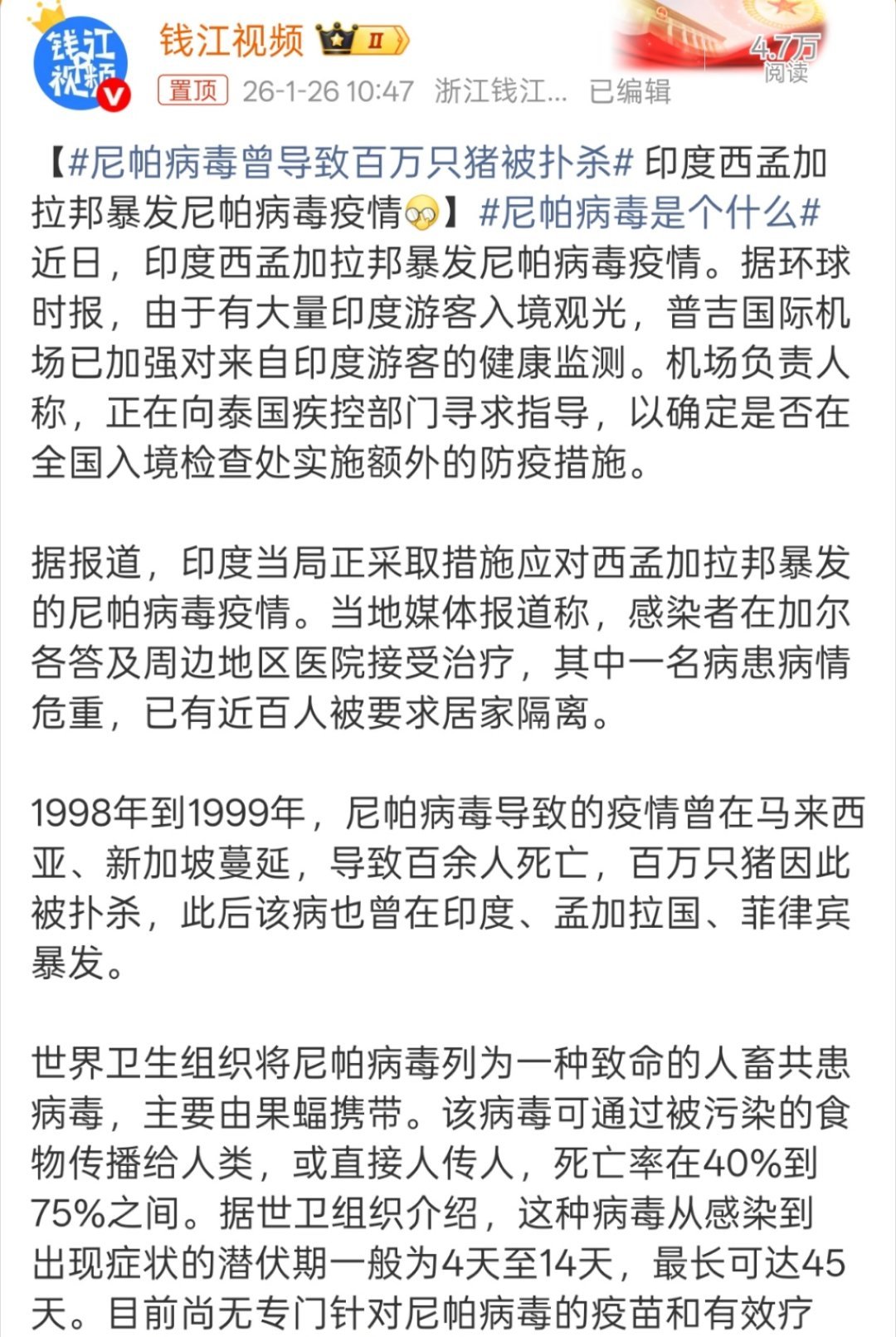 尼帕病毒曾导致百万只猪被扑杀要是夏天大家也不至于这么害怕,又是熟悉的时间,又是熟
