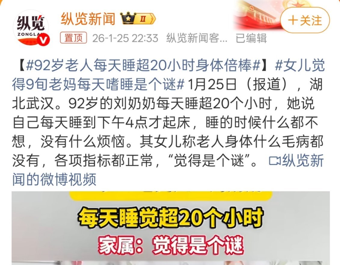 92岁老人每天睡超20小时身体倍棒有一说一,家里人也省心了,不过这一天吃几顿呢?