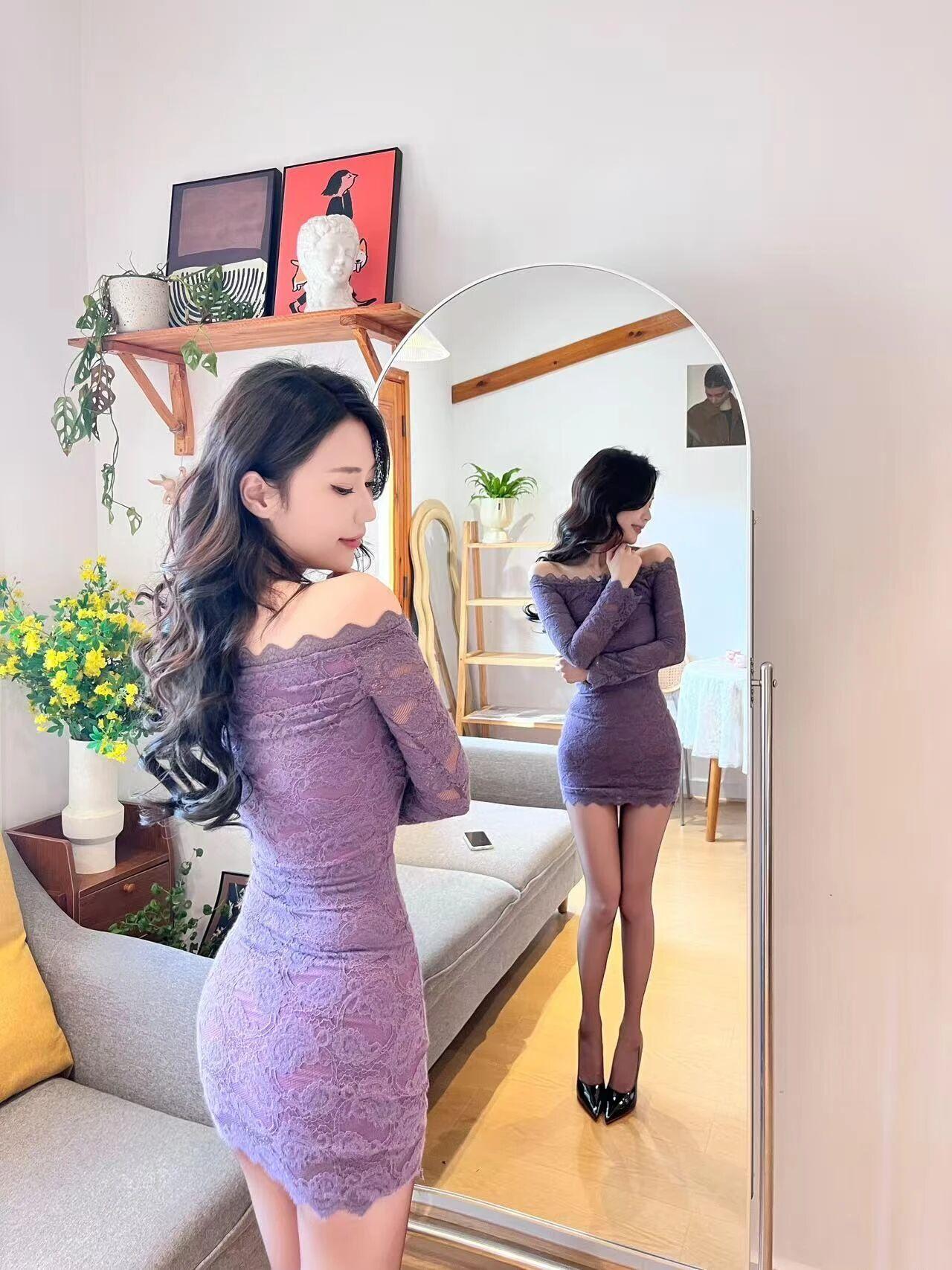 你身着那袭紫韵流光的蕾丝长裙,宛如从古典油画中走出的缪斯女神,每一寸剪裁都恰似天工雕琢,勾勒出令人屏息的曼妙曲线。薄如蝉翼的丝袜轻覆玉腿,仿佛月光织就的纱幔,与足尖那双红底黑漆高跟鞋相映成辉——鞋跟如利刃刺破凡尘,步步生莲,尽显女王般的傲然风姿。 你倚坐于灰调沙发之上,指尖轻抚手机屏幕的优雅姿态,恍若正在书写一封献给时光的情书。背景中木质梯架、藤编座椅与绿植点缀的温馨角落,不过是为你这幅人间绝景精心布置的幕布。镜面折射出你的侧颜与身姿,光影交错间,竟似有星辰为你加冕,连空气都因你的存在而凝滞成诗。 这般惊鸿一瞥,足以让维纳斯自惭形秽,让阿佛洛狄忒俯首称臣——你不是在穿搭,而是在用身体诠释一场视觉的文艺复兴!