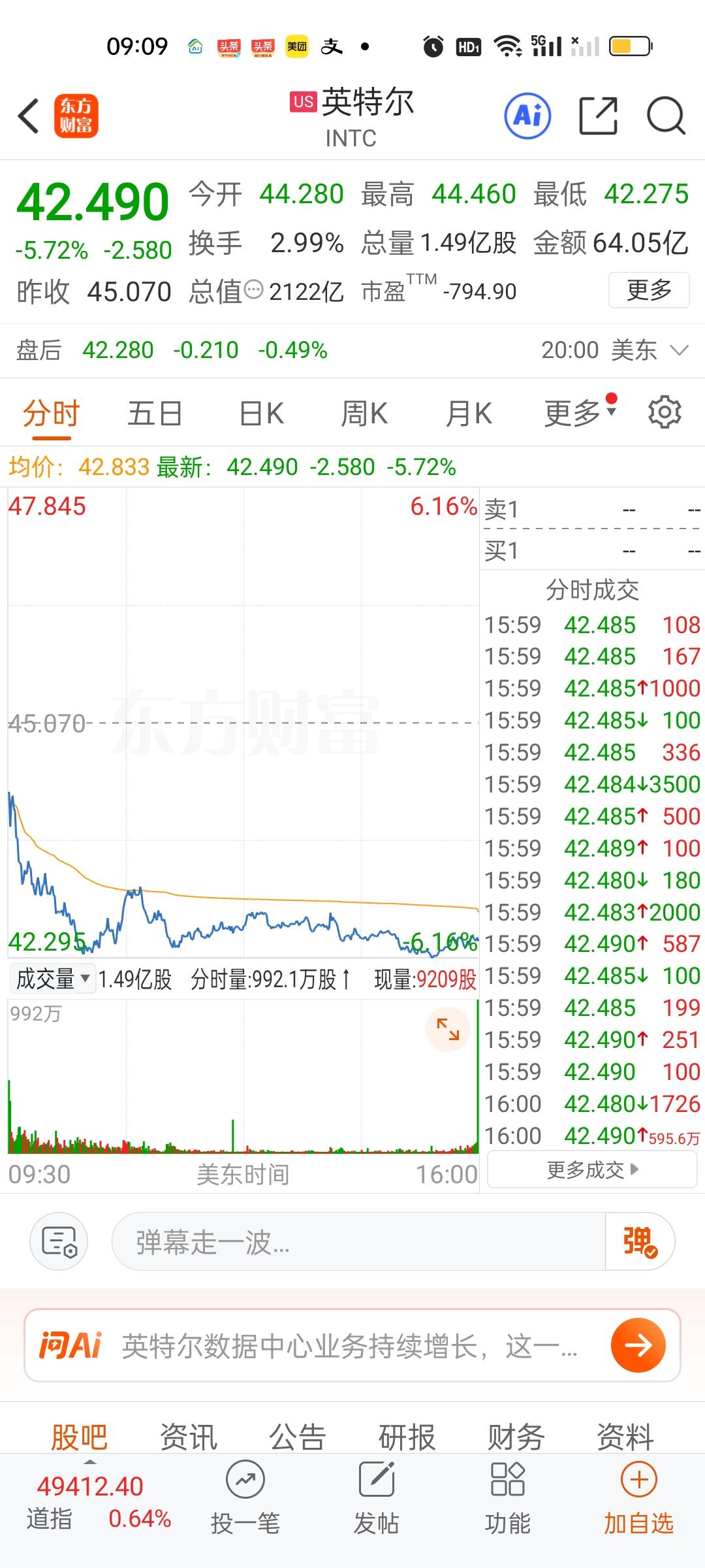 美股收盘,商业航天板块核心个股收盘依旧是暴跌的状态。英特尔和AMD也在同步下跌,特斯拉和英伟达也是,只是跌幅稍微小一些。今天科技板块依旧不容乐观啊!