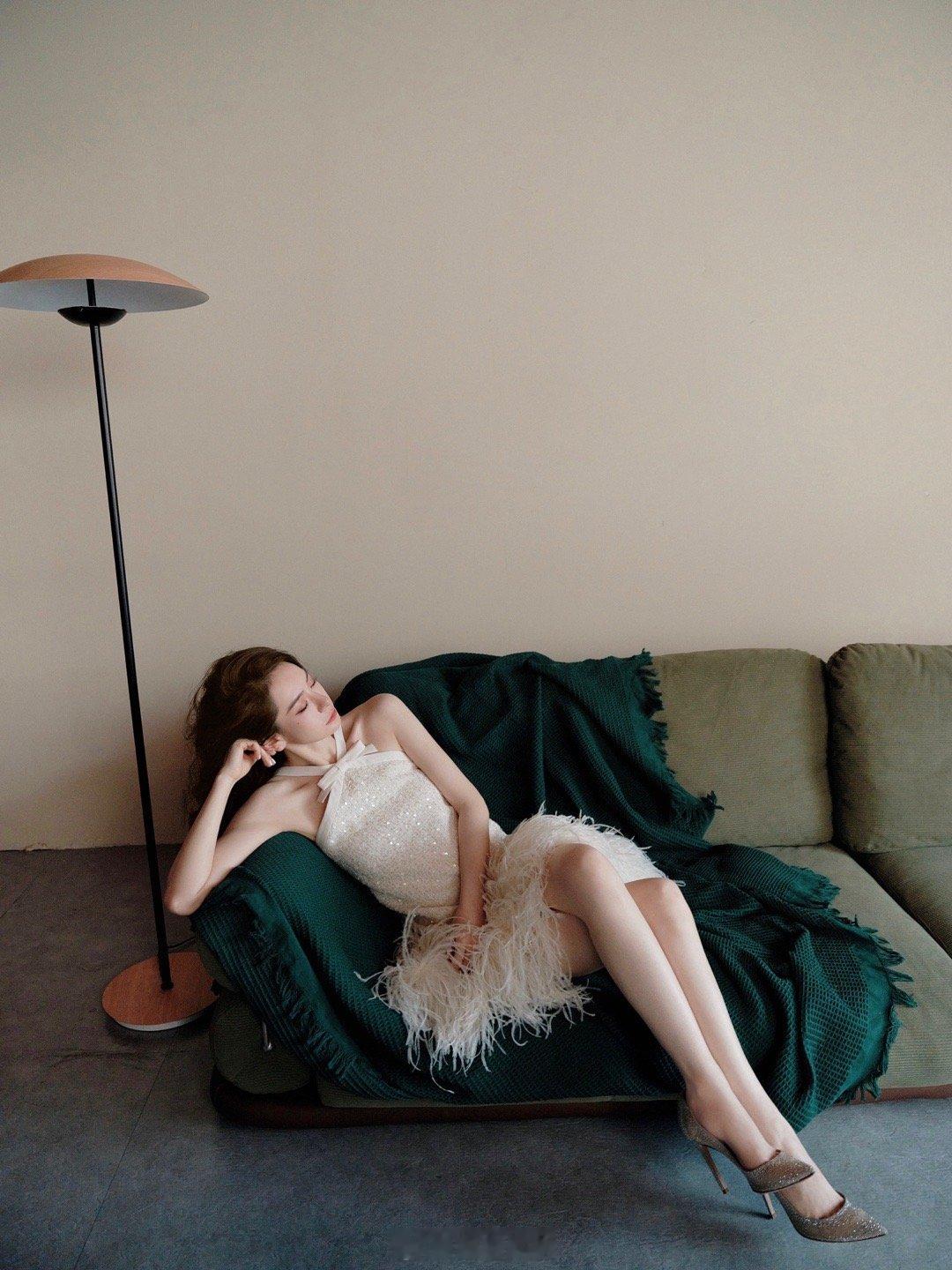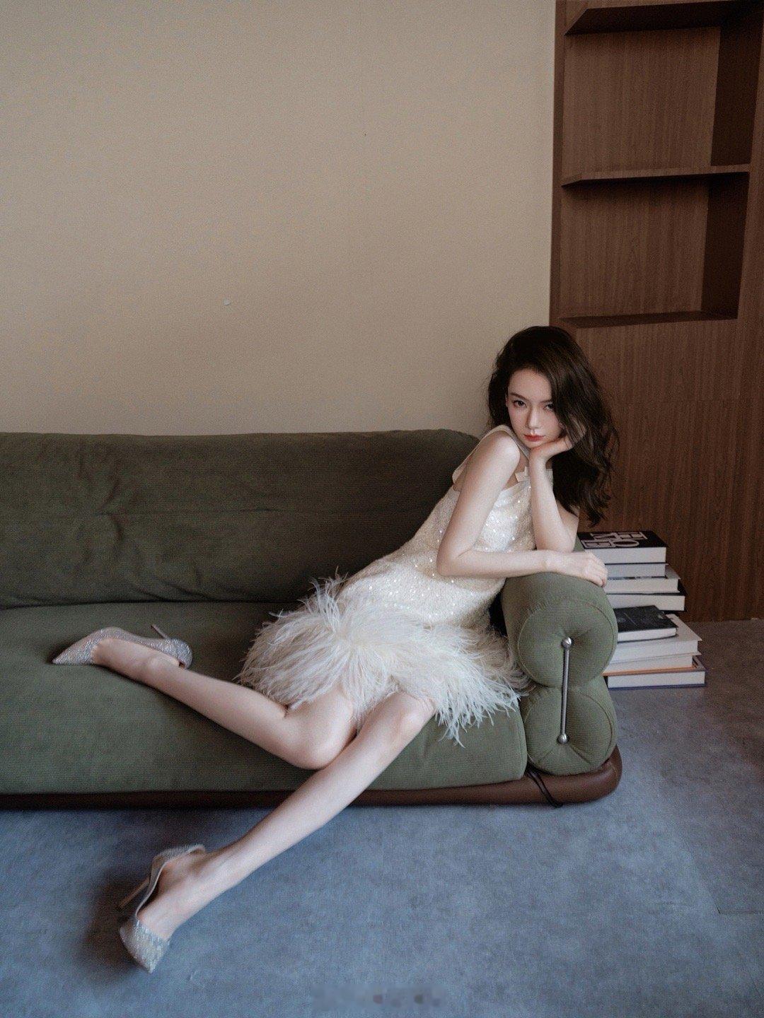 Angelababy晒高定照杨颖金色高定