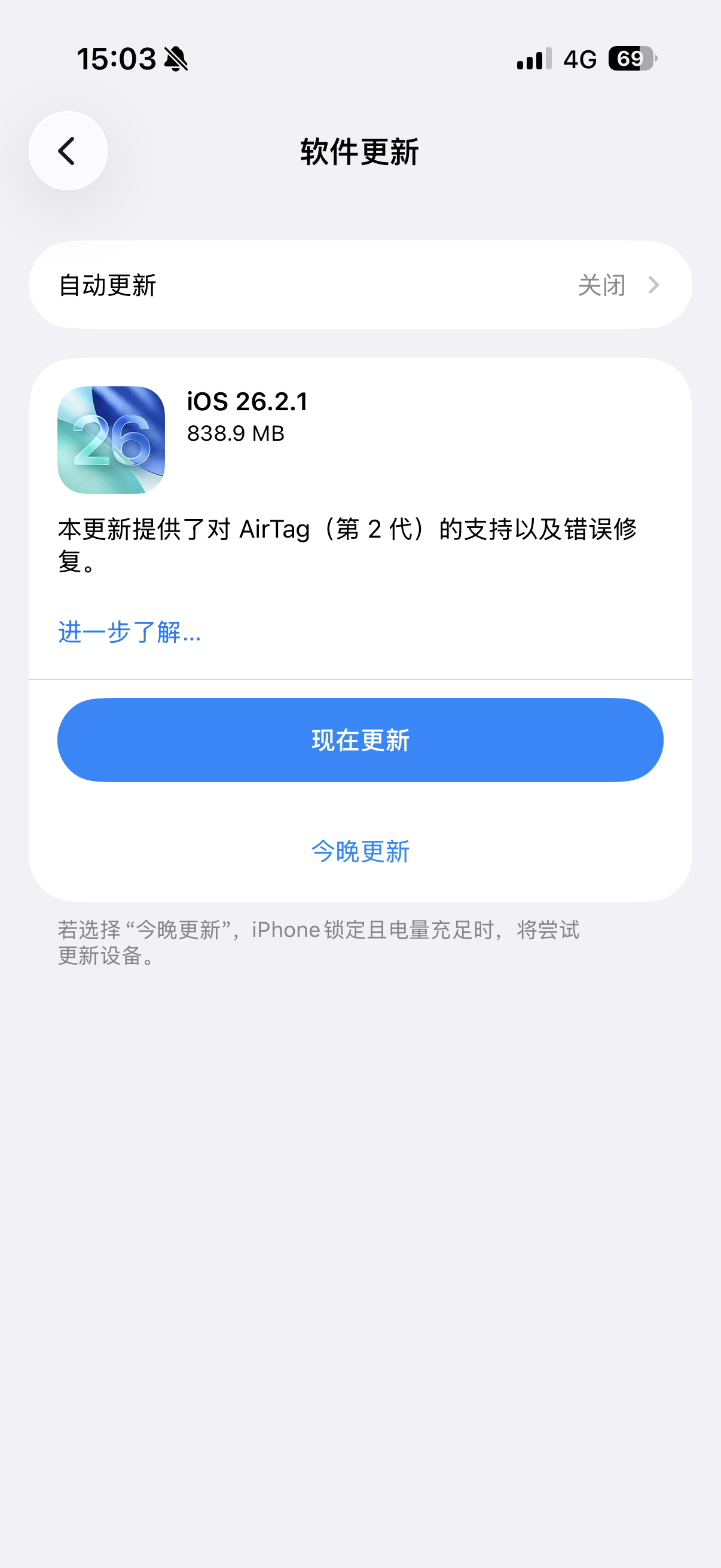 苹果今天凌晨除了推送了iOS26.3 beta3外,还推送了iOS26.2.1正式版,版本号为23C71,没什么新增内容,就是提供了对第二代 AirTag的支持以及错误修复,朋友们都冲了吗?
