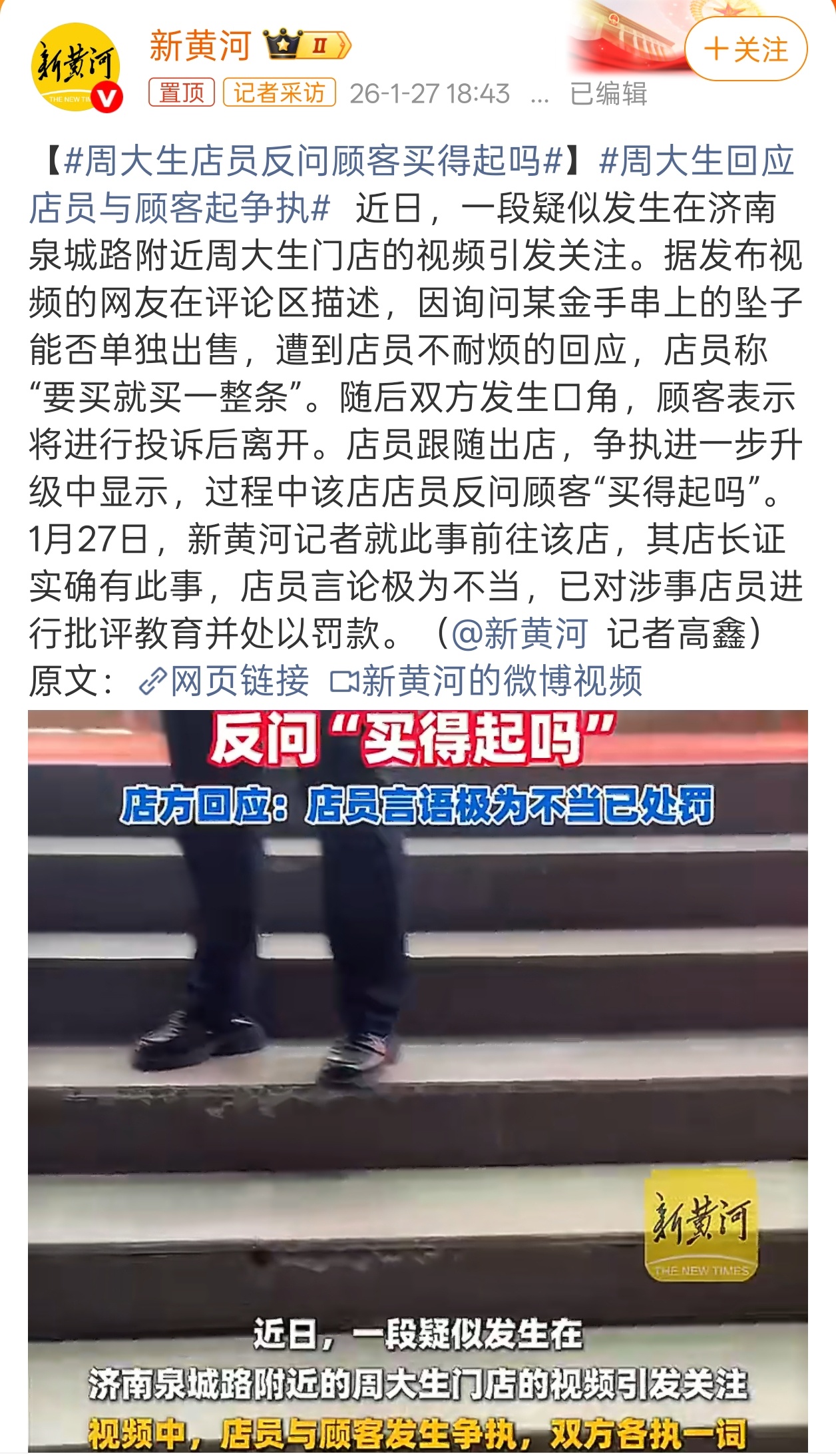 周大生店员反问顾客买得起吗打工人就不要为难消费者了!消费者买不买进店都是顾客可以询问的,有什么话可以好好谈,不要爆粗口。作为消费行业,消费者「顾客」不就是上帝吗?