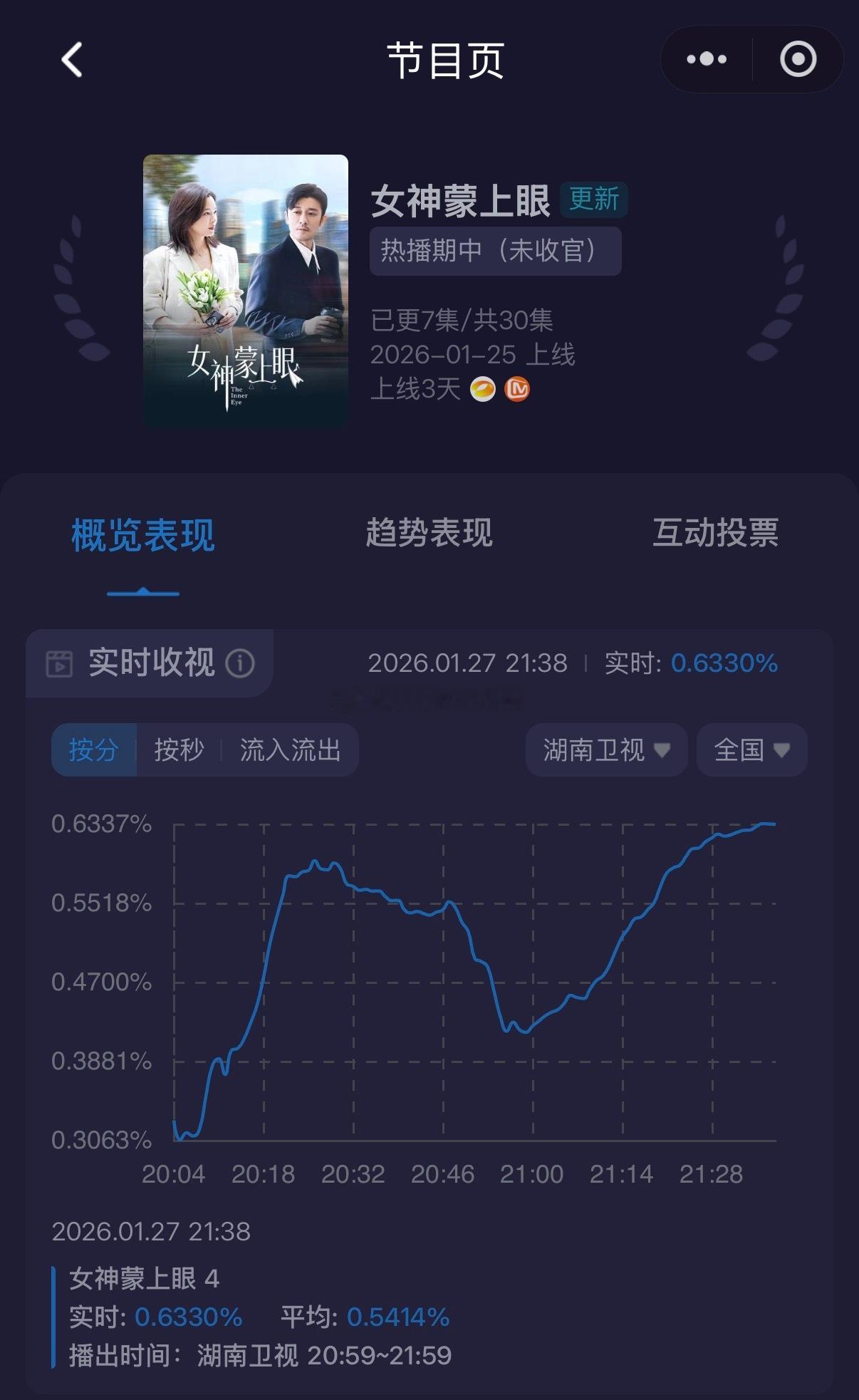辛芷蕾女神蒙上眼开播第二天,收视持续走高,今天酷云突破0.63,继续保持卫视第一