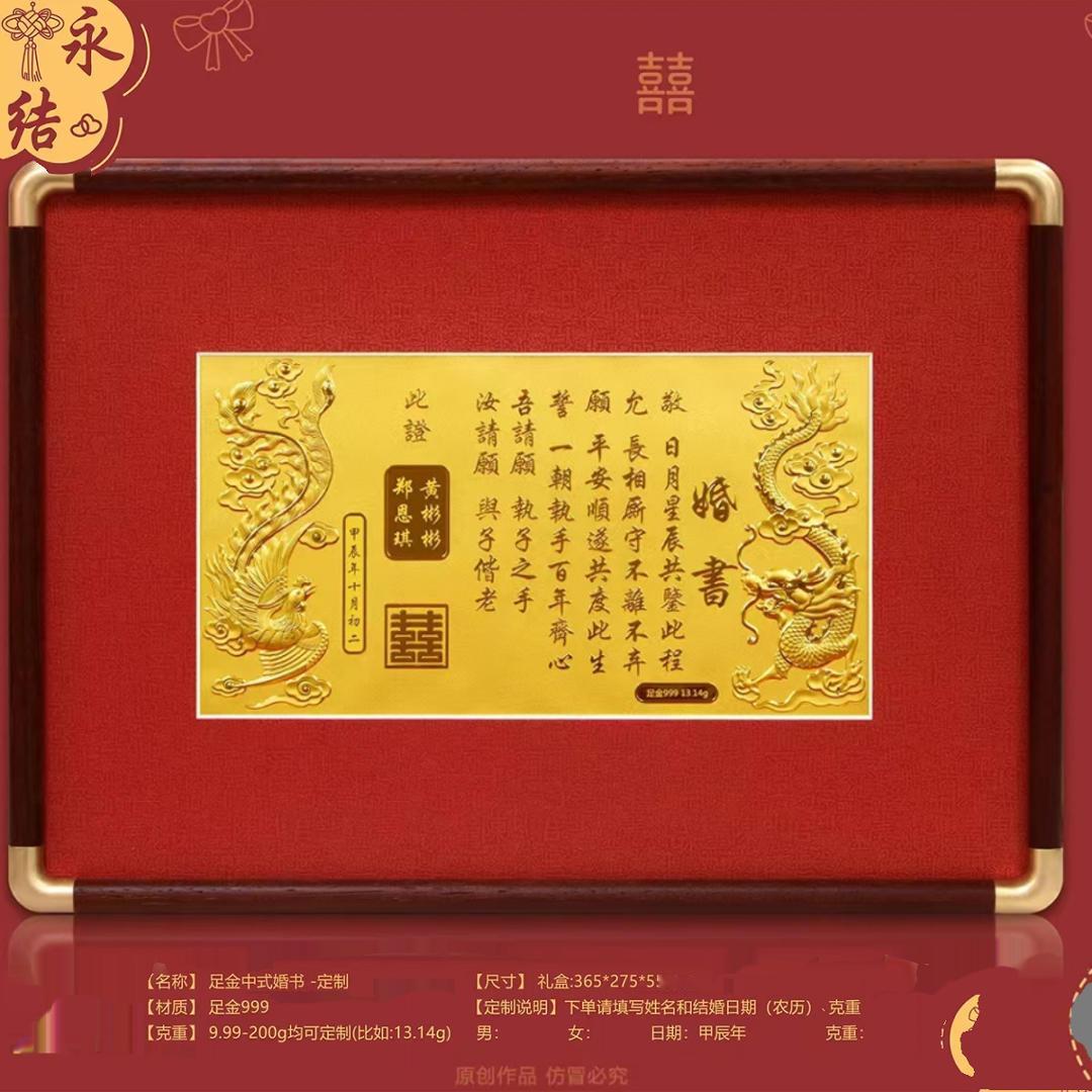 1克纯金可捶成厚度仅 0.0001毫米的金箔1克黄金竟能打造一张完整黄金婚书,具有非常好的市场地位。融合了传统婚俗文化与现代工艺,承载着三书六礼的传统礼制。现在黄金还在涨,没停过……