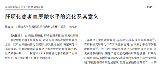 参考资料[1]崔春吉.肝硬化患者血尿酸水平的变化及其意义, 吉林医学, 2011-03-15