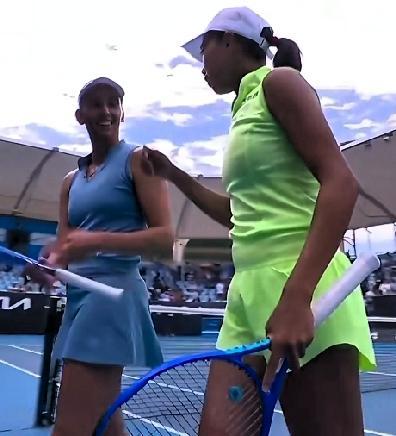 张帅再进澳网四强! 张帅/梅尔滕斯今天上午,在澳网女双1/4决赛中,以 4-6 ,6-4, 6-3的比分,逆转战胜穗积惠莉/吴芳娴组合,打进澳网女双四强。 这是张帅9次参赛澳网女双,第二次打入四强,上一次(2019)直登冠军宝座,祝张帅这回也能登顶夺冠!
