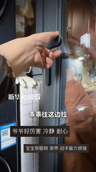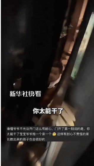 “被新华社点赞了!”四川,一1岁多的宝宝不小心把爷爷锁在阳台外面,爷爷见状,并不着急,而是耐心地引导宝宝如何开锁,万万没想到,宝宝竟真的把门打开了!网友:感受到了情绪稳定的重要性! 四川成都一段爷孙俩的日常视频,在网上悄悄走红,还得到了新华社的点赞。 视频里的小宝宝叫可乐,刚满一岁四个月,那天家里格外安静,爸爸妈妈要上班,奶奶也出门忙活了,只剩可乐和爷爷相依为伴。 爷爷趁着天气还好,拉开阳台的推拉门出去透透气,活泼好动的可乐跟在身后,小手无意识地往门上一推,清脆的“咔嚓”声过后,爷爷直接被锁在了阳台外。 可乐愣了一下,反应过来自己把爷爷关住了,赶紧伸手去拉门,可小小的手掌怎么也找不准开门的力道,折腾了好几下都没动静。 无助感瞬间涌上心头,可乐的眼眶一下子就红了,小手因为着急还一个劲地发抖,站在原地手足无措。 隔着一层玻璃,爷爷把孙子的模样看得一清二楚,他没有慌着喊人,也没掏手机联系家人,只是缓缓蹲下身,让自己的视线和可乐保持平行,语气里满是温柔。 他没有提锁门的事,先是安慰可乐不要哭,用温和的声音让孩子别害怕,慢慢靠近门边。 见可乐的哭声渐渐平缓,慢慢挪到了门边,爷爷才开始示范开门的动作,手指扣住门把手往上推,一遍又一遍地展示给可乐看。 可乐踮着脚尖,努力抬起小手模仿爷爷的动作,可年纪太小、身高不够,每次门把手都只推到一半,门始终打不开。 几次尝试都失败后,可乐的情绪又变得焦躁起来,嘴巴一瘪又要哭,爷爷依旧没有半点不耐烦,也没有指责孩子,只是轻声鼓励他再试一次。 他放慢动作,一点点指引可乐,告诉孩子先把小手放对位置,再稍微用力往上举,全程语气平缓,没有一丝催促。 可乐爷爷是个知识分子,性子本就儒雅沉稳,遇到这样的突发情况,全程都保持着情绪稳定,这份从容也慢慢安抚了慌乱的小可乐。 平时可乐就比同龄宝宝更懂事,大人说的话都能听懂,在爷爷的耐心引导下,他渐渐静下心来,专注地跟着爷爷的指引摸索。 从慌乱哭闹到专注尝试,整整过去了近十分钟,可乐终于找对了窍门,攒足了全身的力气,小手猛地将门把手往上一拨,推拉门应声而开。 门一开,可乐立刻扑进爷爷怀里,爷爷笑着将他紧紧抱住,一边轻轻拍着他的后背,一边夸他能干,还低头在他脸上亲了一口,满是疼爱。 爷爷教可乐开门的这段视频被好发到了网上,没想到很快就引发了网友的热议。 有网友说,这才是最好的隔代亲,不指责不抱怨,用耐心陪着孩子成长,这样的家庭氛围太让人羡慕了。 也有网友感慨,很多长辈遇到这种情况都会急着批评孩子,可乐爷爷的温和与耐心,真的很难得。 可乐妈妈后来看到这段视频,心里满是复杂的情绪,既担心孩子当时受了惊吓,又为爷爷的耐心和孩子的勇敢感到欣慰。 对小孩子来说,闯祸本就是成长中的常态,不同的应对方式,会给孩子带来不一样的感受。 可乐爷爷没有把这次意外当成麻烦,也没有用指责去吓唬孩子,而是用温柔陪着孩子一起解决问题。 这份不疾不徐的引导,给了可乐足够的安全感,让他在试错中学会了坚持,也体会到了努力后的成就感。 这看似平常的十分钟,藏着最动人的亲情,也藏着打动人心的教育方式。