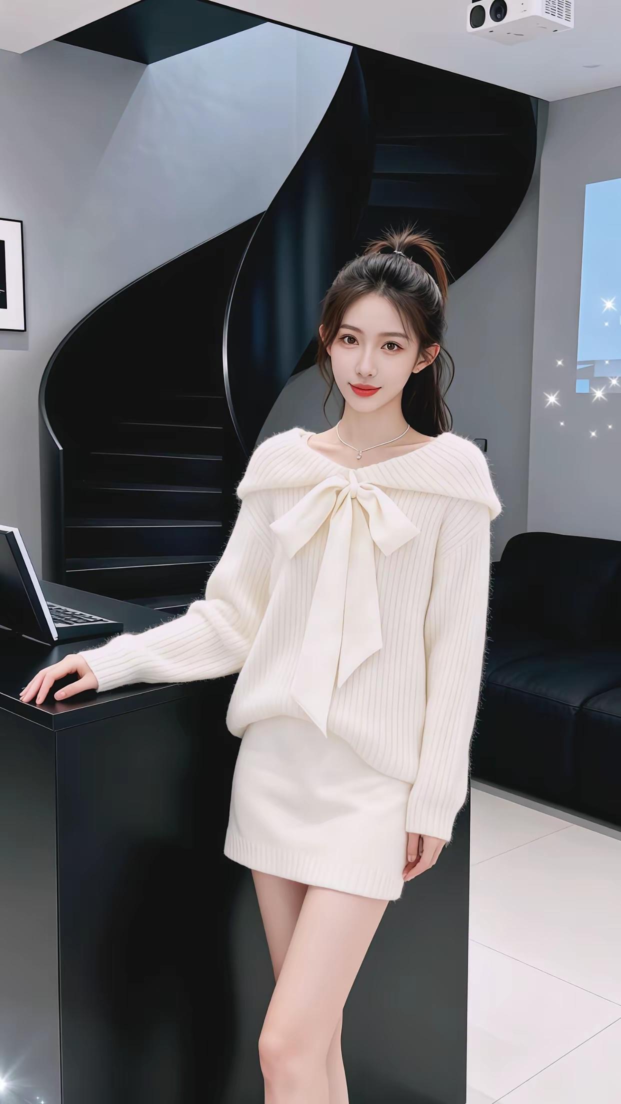 优雅气质穿搭,灰色毛衣搭配短裙,精致高跟鞋,完美展现都市女性魅力。