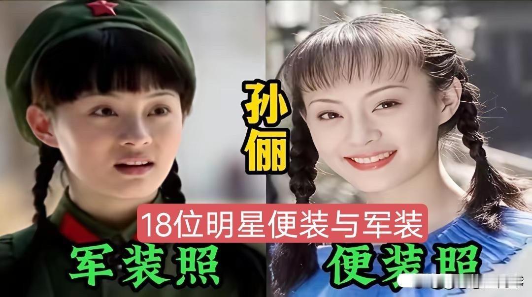 便装VS军装:女星气质瞬间切换,谁的反差最得劲? 先看咱“娘娘”孙俪。便装照里的她,大多知性干练,或是温婉清新,就是都市里那种特别有主见、活得明白的漂亮女人。可这军装一上身,乖乖,那感觉立马就变了。 她演过《幸福像花儿一样》里的杜鹃,就是个文艺兵。穿上军装,梳俩小辫,那股子纯真和执着劲儿,从眼神里就能透出来。后来在《烈火军校》里虽然不是主角,但造型一出来,也是利落得很。 赵丽颖的便装形象,咱太熟了。圆圆的脸蛋,大眼睛,多数时候给人的感觉是甜美、灵动、邻家,像《杉杉来了》里吃啥都香的薛杉杉。可你别被她这外表“骗”了,这闺女骨子里韧劲儿大着呢。 她最深入人心的军装(或者说戎装)形象,必须是《楚乔传》里的楚乔。那可不是一般的军装,那是战场上的铠甲。