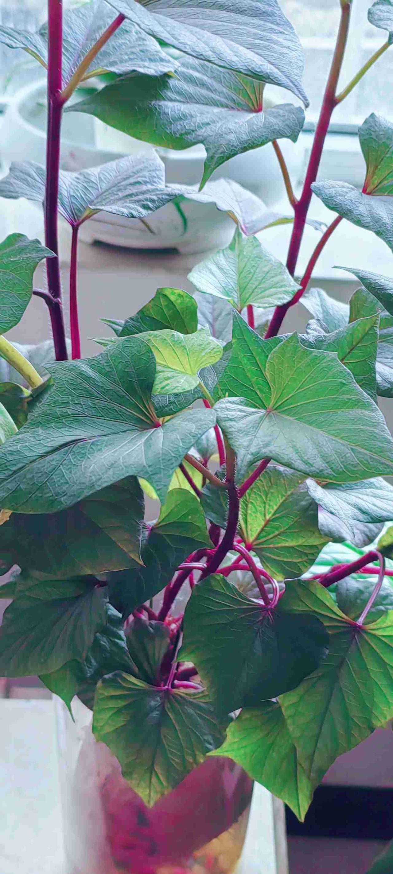 我的今日状态:😁轻松愉快 我这里的天气:☀️晴天 又是美好的一天! 友你猜这是什么叶子? 哈哈红薯来水培, 既来观赏又能食用, 一举两得呀!