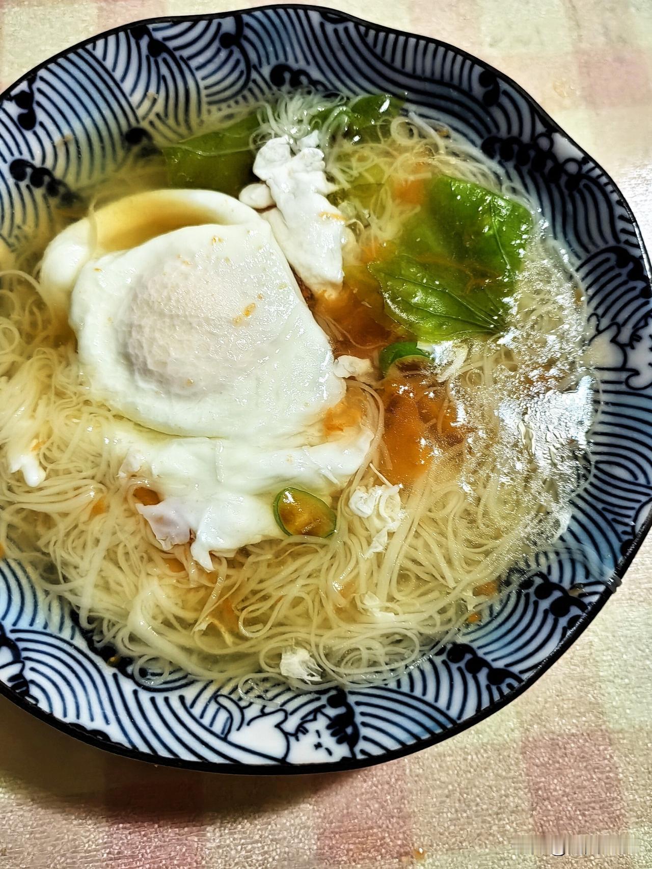 冬日生活有点暖, 早餐做了手工面。 西红柿、红薯叶, 再放一个荷包蛋, 营养健康每一天!