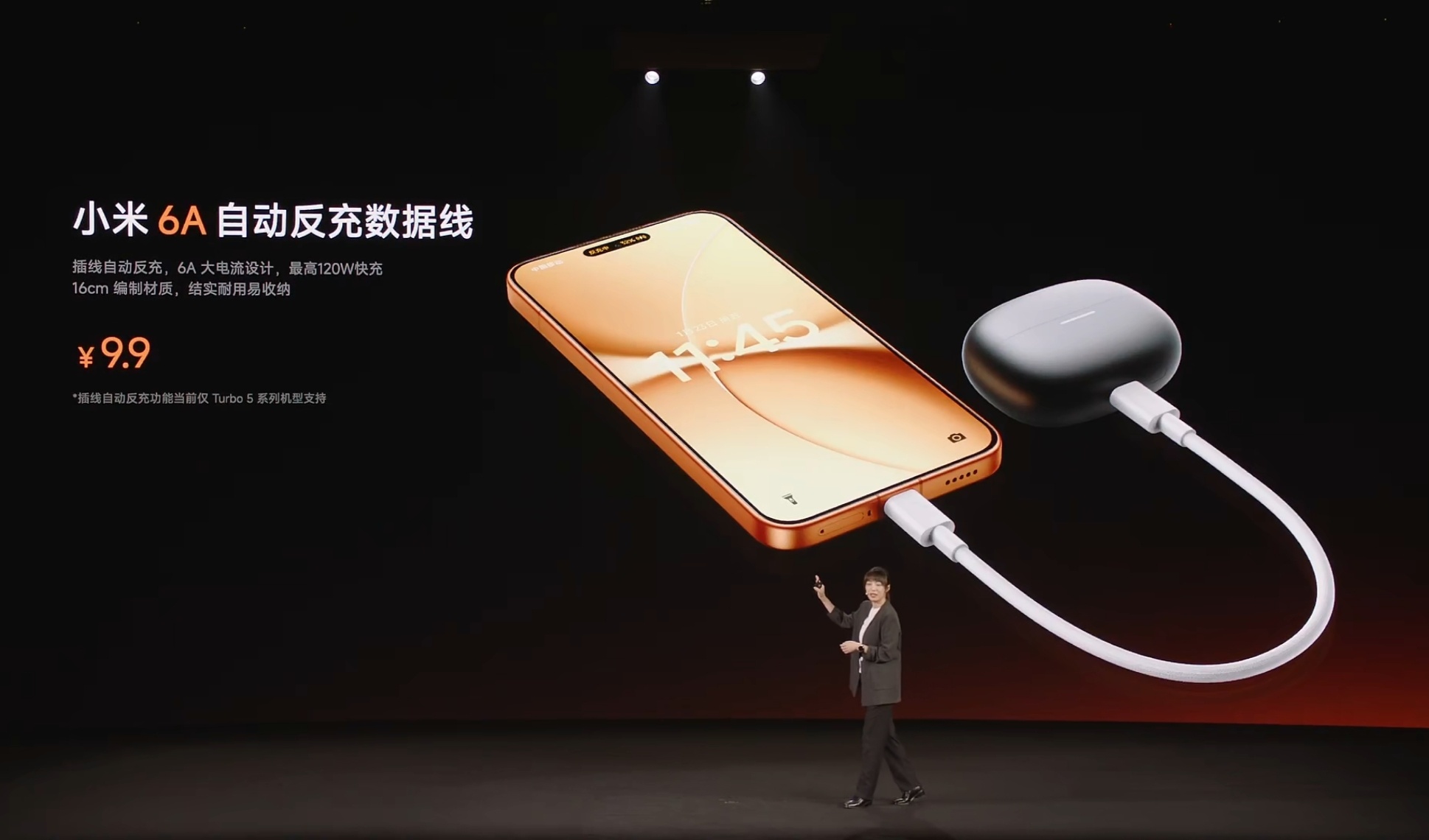 花 9 块 9 买这根线我挺划算插上直接就能给耳机充电很方便!红米turbo5发布会