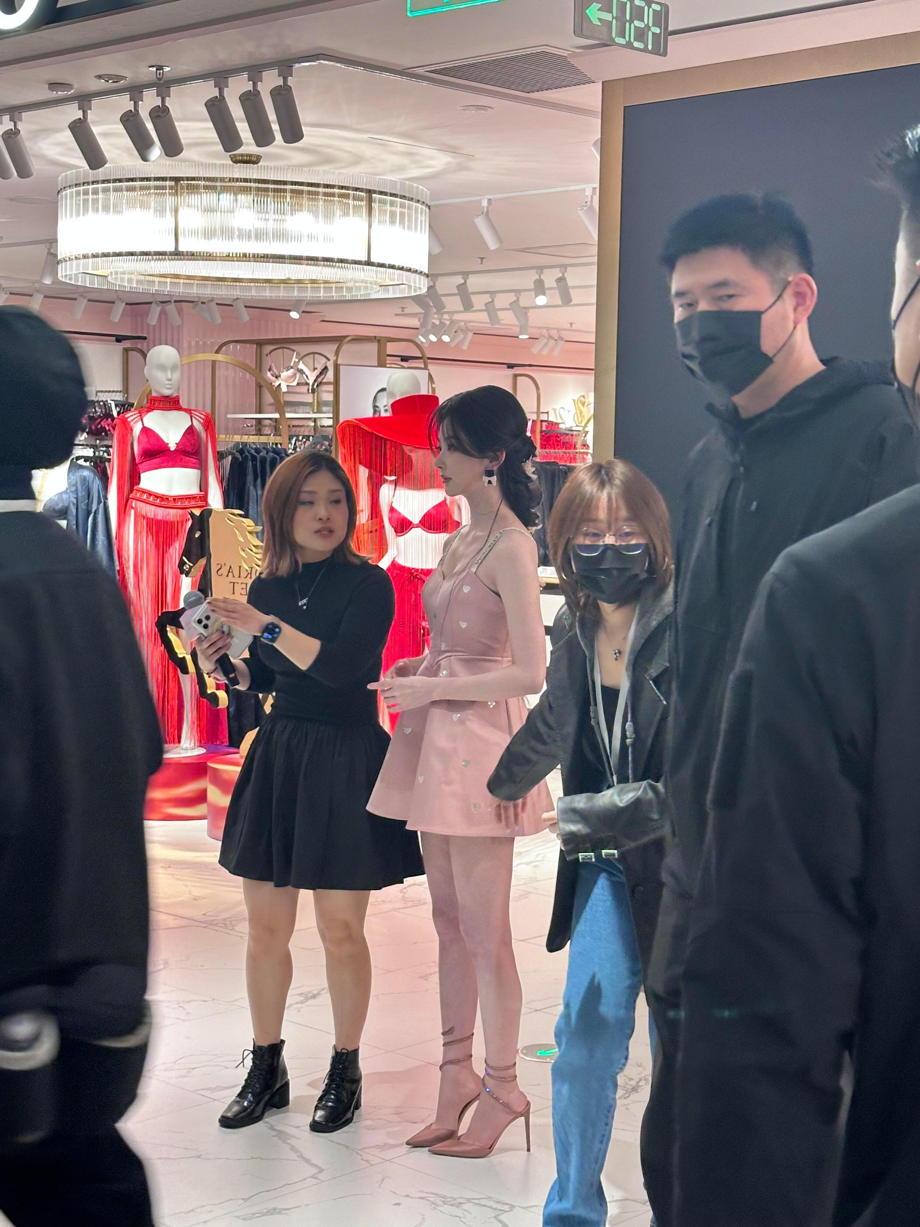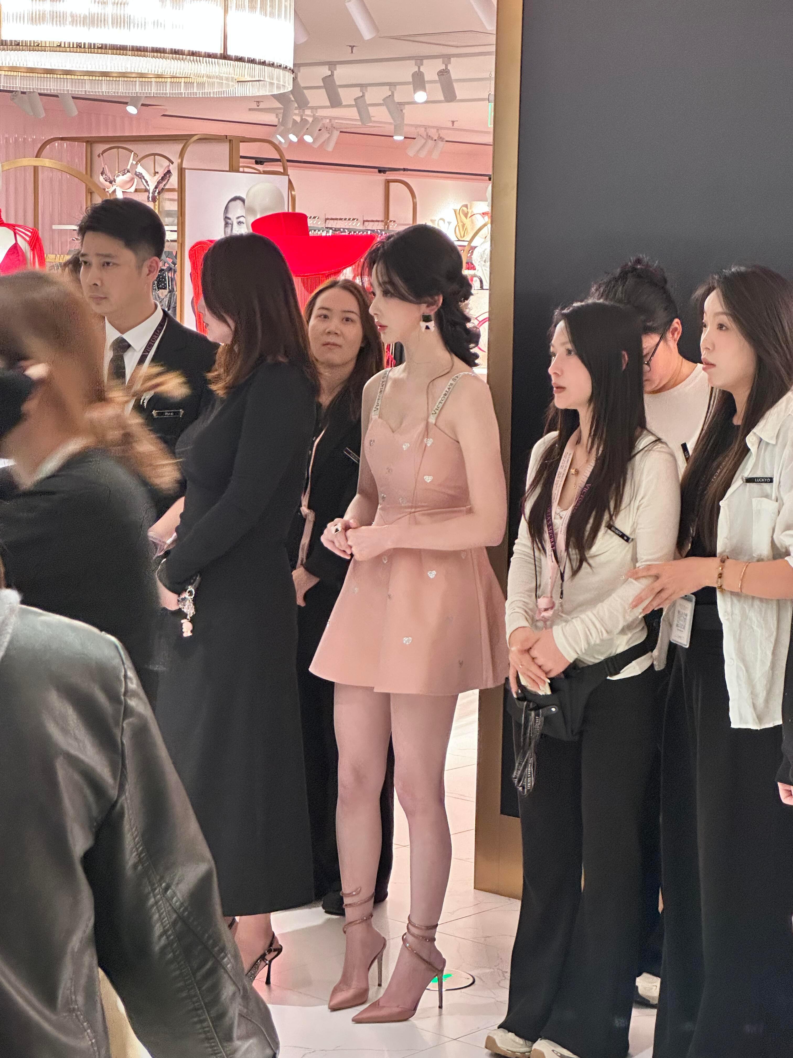 张天爱跟素人合影,胯真的好宽,大宅院似的