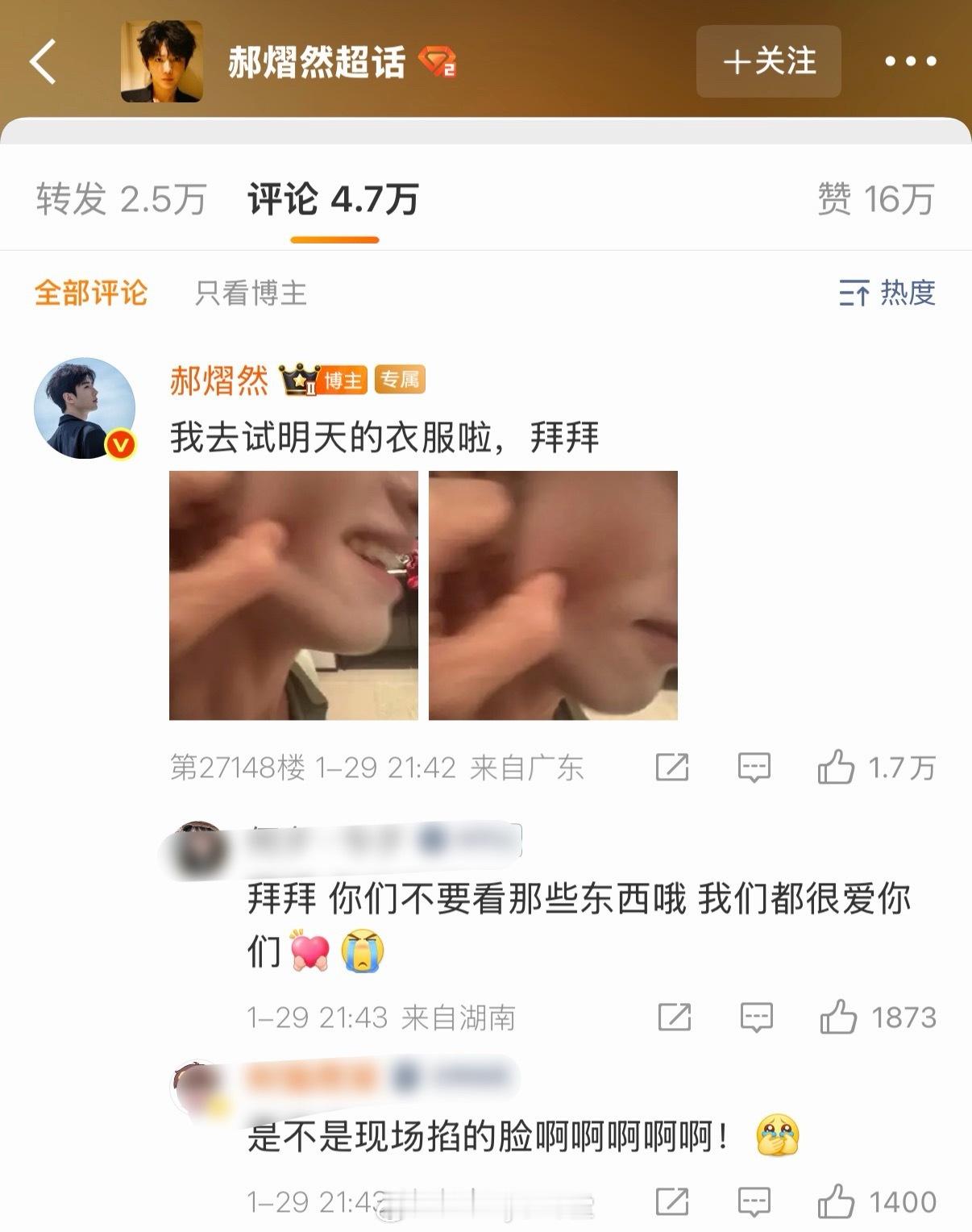 郝熠然空降唯粉超话,翻牌粉丝评论,配的却疑似是他捏云旗脸的图……你们云熠星河是懂什么叫做既要又要的,太努力了