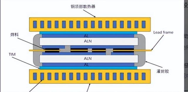 随着功率电子器件正向高密度化,大功率,小型化发展,大规模运用电子器件给我们的生活带来便利的同时,越来越高功率使得电子器件的散热问题愈发严重。因此散热是一项非常关键的技术,散热性能的好坏直接影响着产品的性能和寿命。1)在器件封装中,由于封装材料不同,其封装材料的热膨胀系数的差异,导致器件出现不同程度的形变和热应力积累,最终导致如焊线脱离、焊料分层、塑封体开裂分层等失效问题; 温度的升高也会降低器件的性能,带来电流的载荷能力和栅压影响等问题。传统单面散热的功率芯片损耗产生的热量通过绝缘基板、底板单方向传导至散热器。这种方式虽然能够解决一定的散热需求,但并不能解决一些大热量的散热需求。采用单面散热方案,传热通道有限,热阻较大,造成芯片与散热面的温差大,在长期使用过程中,芯片容易因温度过高而烧毁。2)在传统的功率模块封装中,功率半导体器件的顶部仅用于电气连接,而底部通常连接到DBC(直接键合铜)衬底,用于电气连接和传热。由于易于使用和生产成本低,引线键合一直是功率模块封装中使用的互连方法。然而,这种非对称封装结构存在寄生电参数大、热应力作用下模具弯曲等一系列缺陷。虽然引线键合在技术上有一些改进,包括使用Cu或Al带状线键合取代Al,但由于连接点处的热应力较高,连接强度相对较低,引线键合仍然是电源模块可靠性中最薄弱的环节。引键合方法也是寄生损耗的主要来源。更重要的是,线键的存在阻止了功率半导体器件顶部散热的可能性。