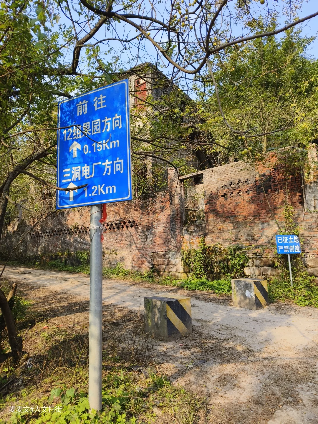 如今,废弃老厂房的红砖墙爬满藤蔓,空旷车间里只剩斑驳墙皮与窗棂,阳光在积灰的地面投下光影,仿佛还能听见当年的机器轰鸣。路边的指示牌仍指向“三洞电厂方向”,残存的“三月”标识与“SNDG”字样,是旧时光的密码。