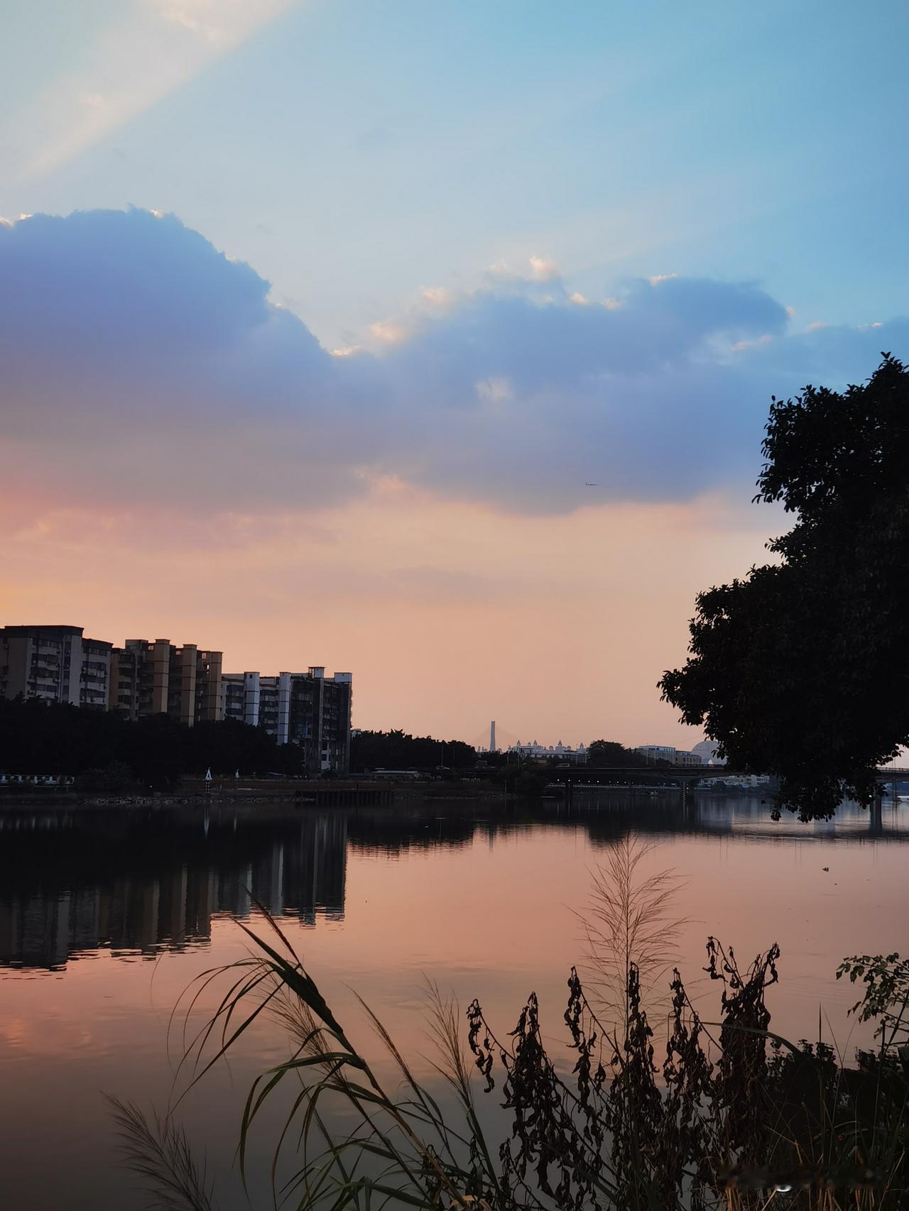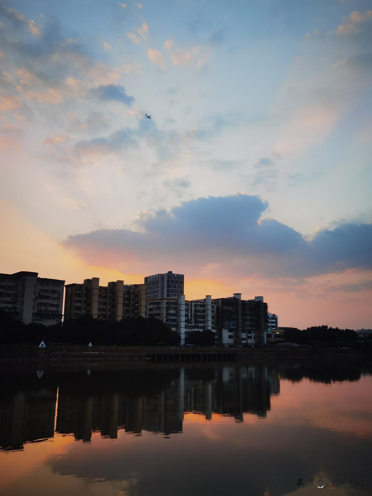 美丽的晚霞,你有吗现实版的水彩画晚霞,水天一色,江水平静如镜,相映成聚,夕阳余晖下的云彩泛起五彩缤纷的色彩,逆光拍的感觉也很喜欢,每当傍晚散步时分,驻足拍下这绝美晚霞,心中甚是满足,夕阳无限好,只是近黄昏!感谢大自然的馈赠,只要你有发现美的眼睛,生活处处有惊喜![送心]