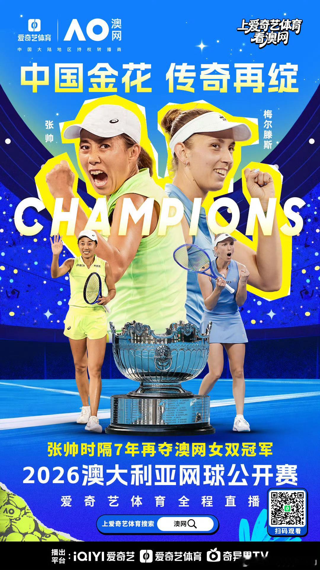 张帅组合夺澳网女双冠军 张帅夺澳网女双第二冠 张帅时隔七年再夺澳网女双冠军 澳网女双决赛,4号种子/2-0战胜7号种子达尼丽娜/克鲁尼奇,获得搭档以来首个大满贯女双冠军。同时,这也是张帅职业生涯第三个大满贯女双冠军。37岁老将了,不容易啊!