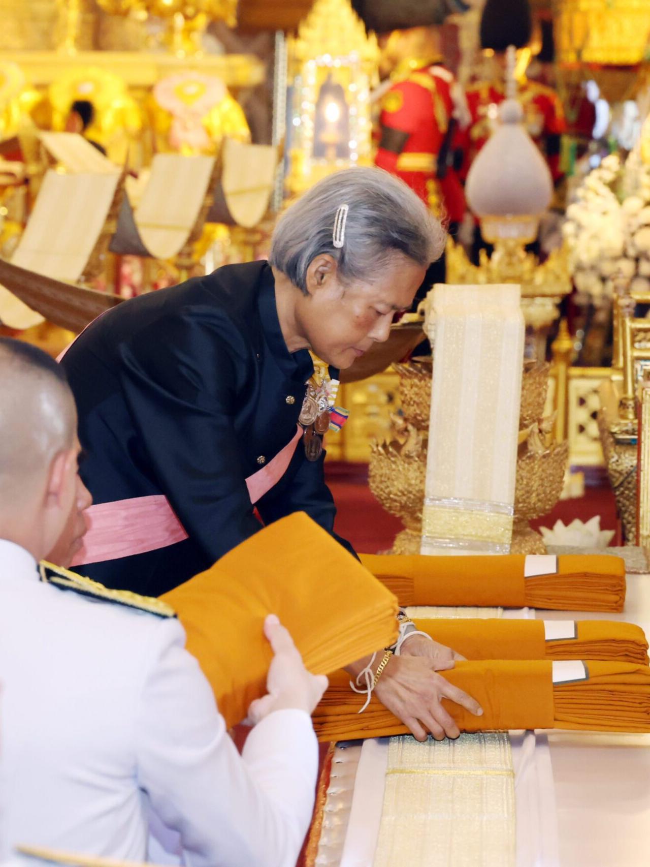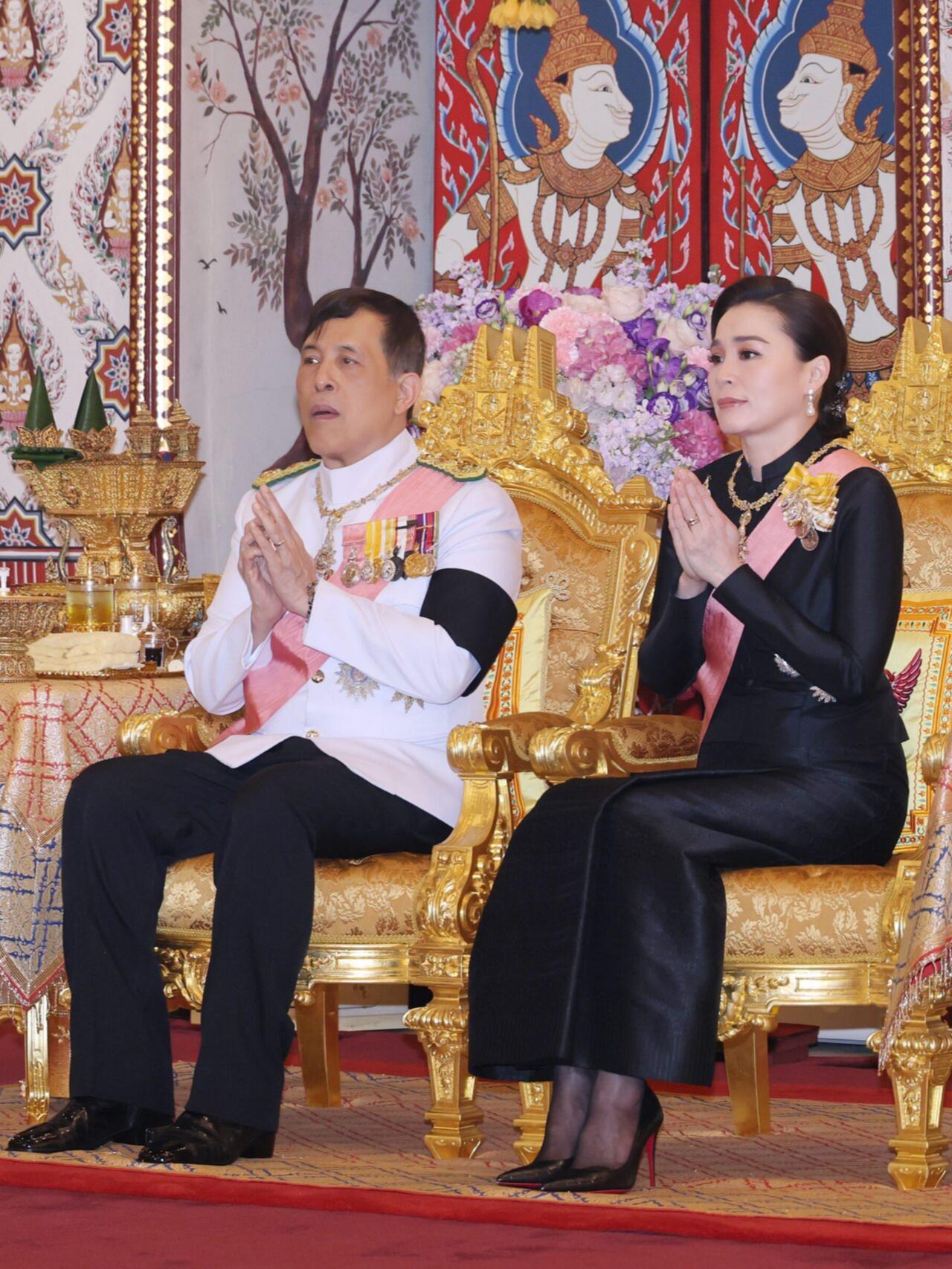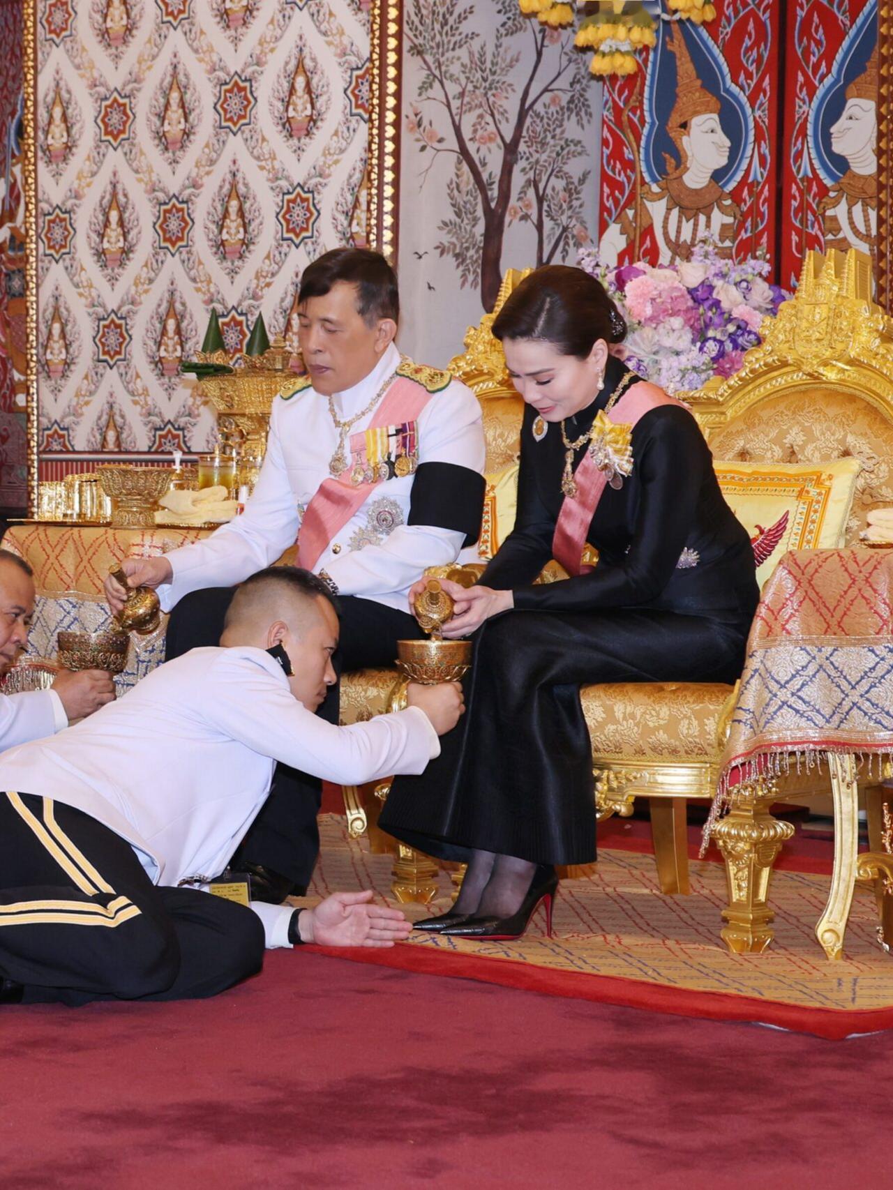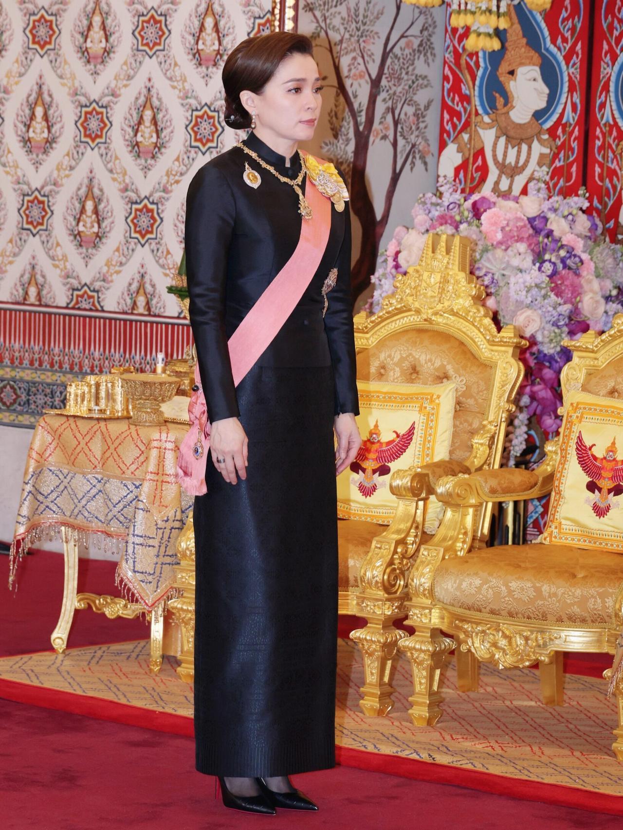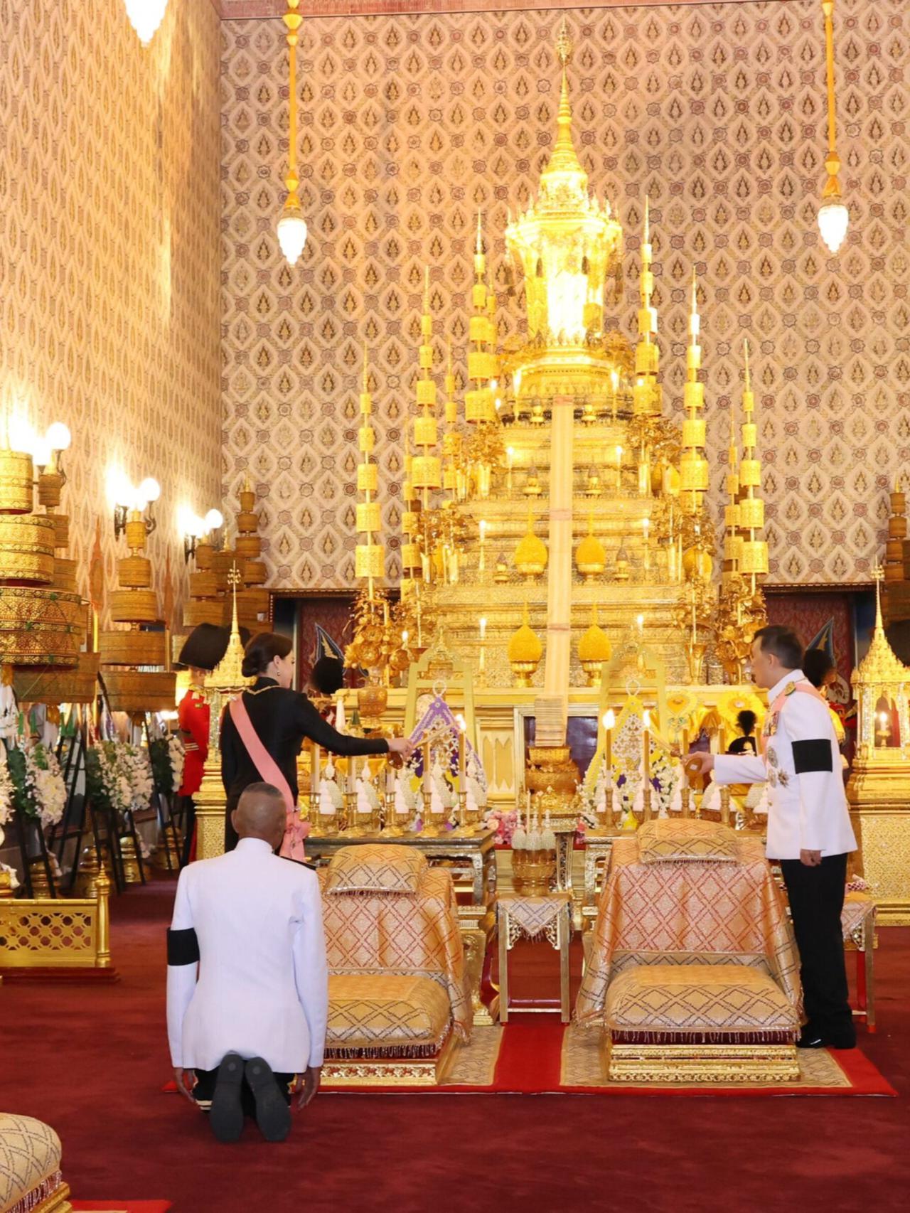 诗丽吉逝世百日追思会,苏提达无疑是女主角 泰王携苏提达王后,乘坐皇家车队前往大皇宫律实玛哈帕萨宫,出席已故诗丽吉王太后逝世百日追思会。此次出行,提帮功和诗妮娜也一同随行,现场氛围庄严肃穆,众人共同缅怀王太后。
