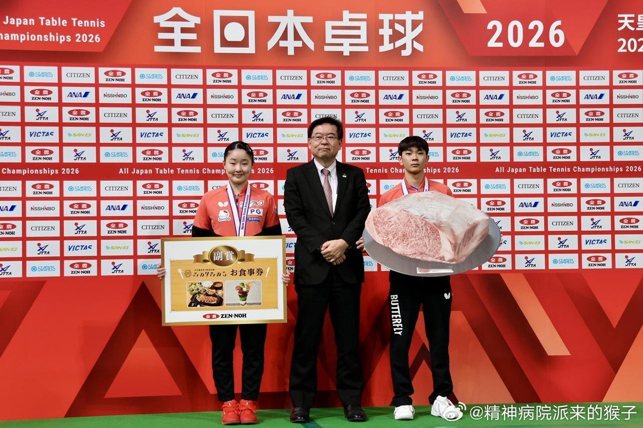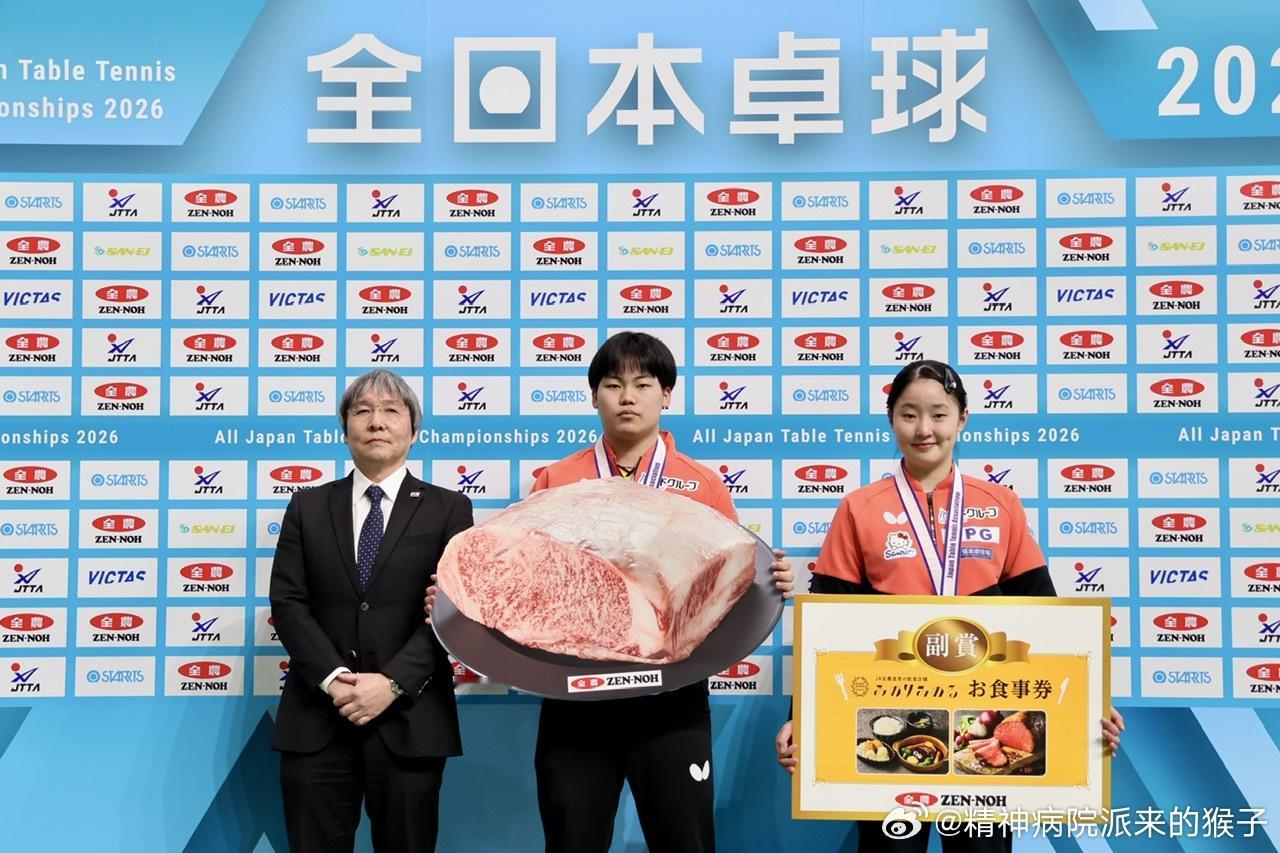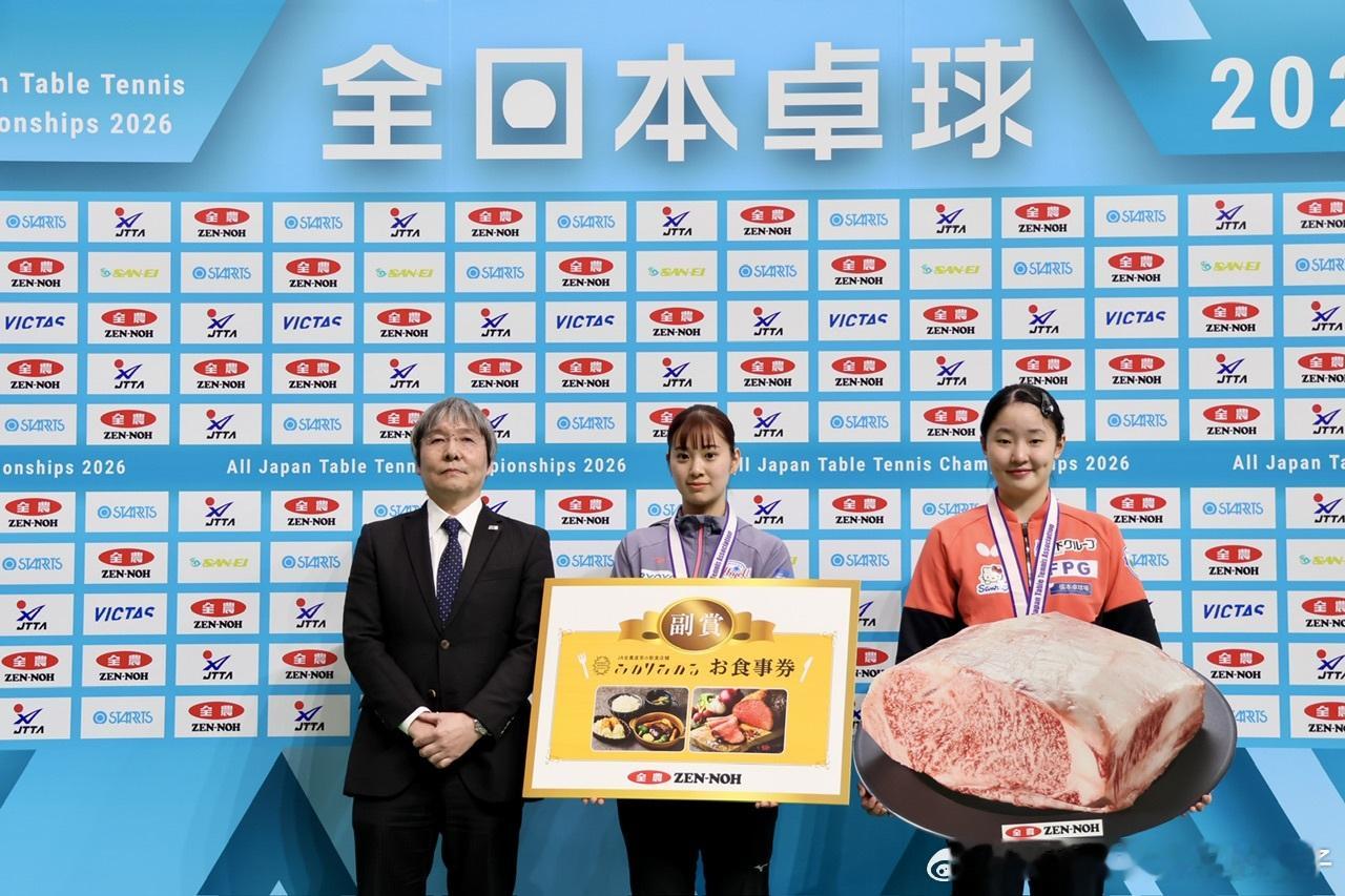 2026年全日锦锦标赛四冠王张本美和获得的奖品除了西铁城手表,住宿券之外,还获得了全农提供的50kg国产黑毛和牛以及直营餐厅的使用券🥩😂女单冠军30kg+青年组女单冠军10kg+女双冠军个人5kg+混双冠军个人5kg