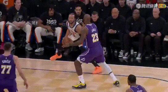瞎跑、看戏、使坏——詹姆斯这防守! 图1-2:布伦森你咋倒了?是为了自己好快攻吗,太坏了; 图3-4:他为啥跑去中路,又回到唐斯屁股后?莫名其妙!唐斯:裁判,打脸了!!! 图5:篮下看戏2人组; 说詹姆斯防守的自己看看,这才打几分钟???