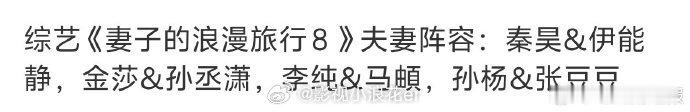 妻子的浪漫旅行8网传阵容网传马頔李纯参加妻子8 妻子8网传阵容新鲜释出,马頔李纯携手加盟,民谣歌手的温柔与实力演员的通透,碰撞出不一样的夫妻温情。