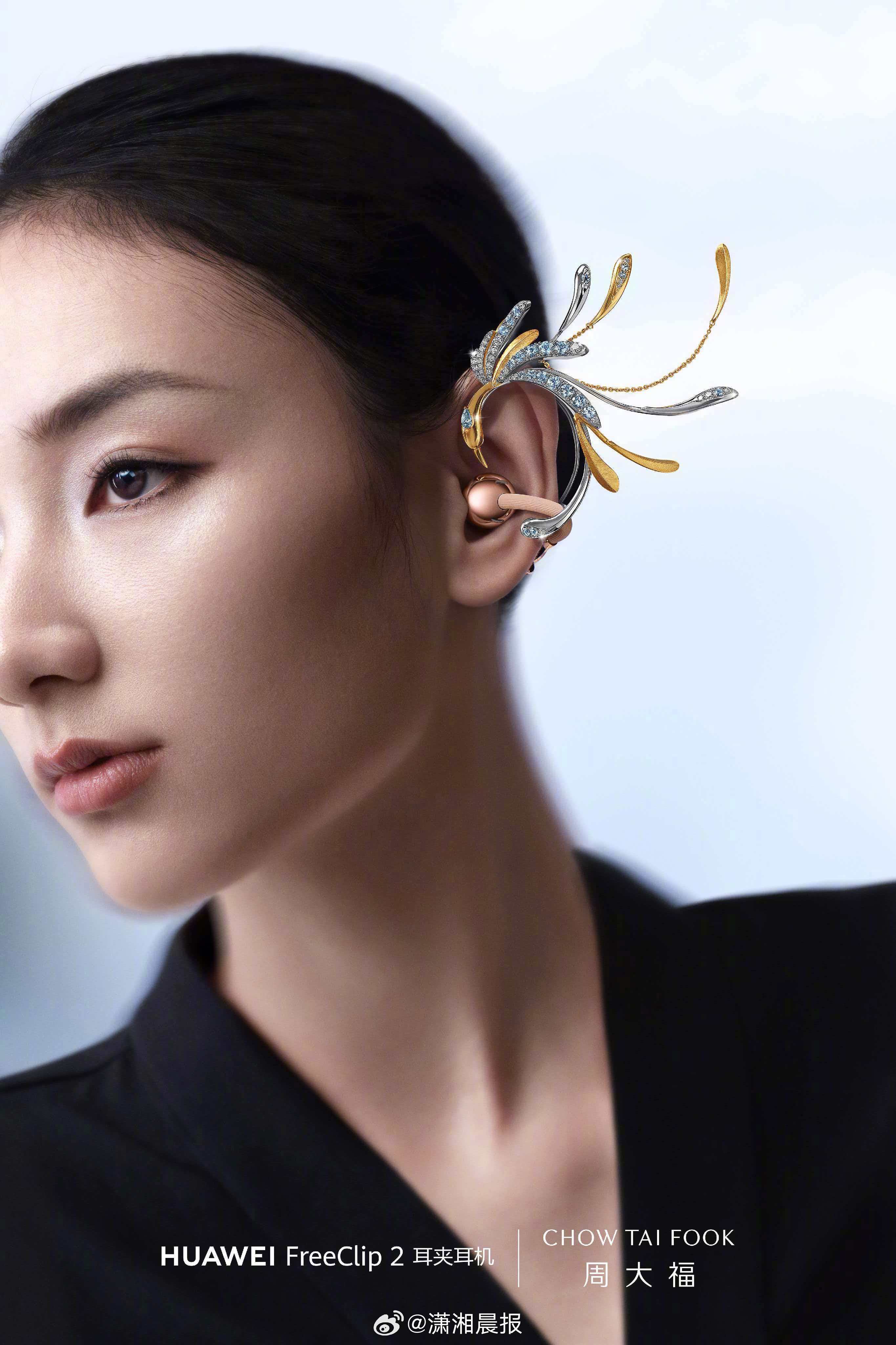 #今年过年要把福气戴身上# 今日,华为FreeClip 2全新配色惊喜上线,与周大福的跨界联动更添惊喜,专属發财小金砖配饰承载招财纳福、美好和谐的祝福!